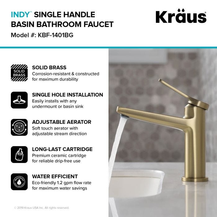 Indy 싱글 핸들 세면대 욕실 수전(매트골드)