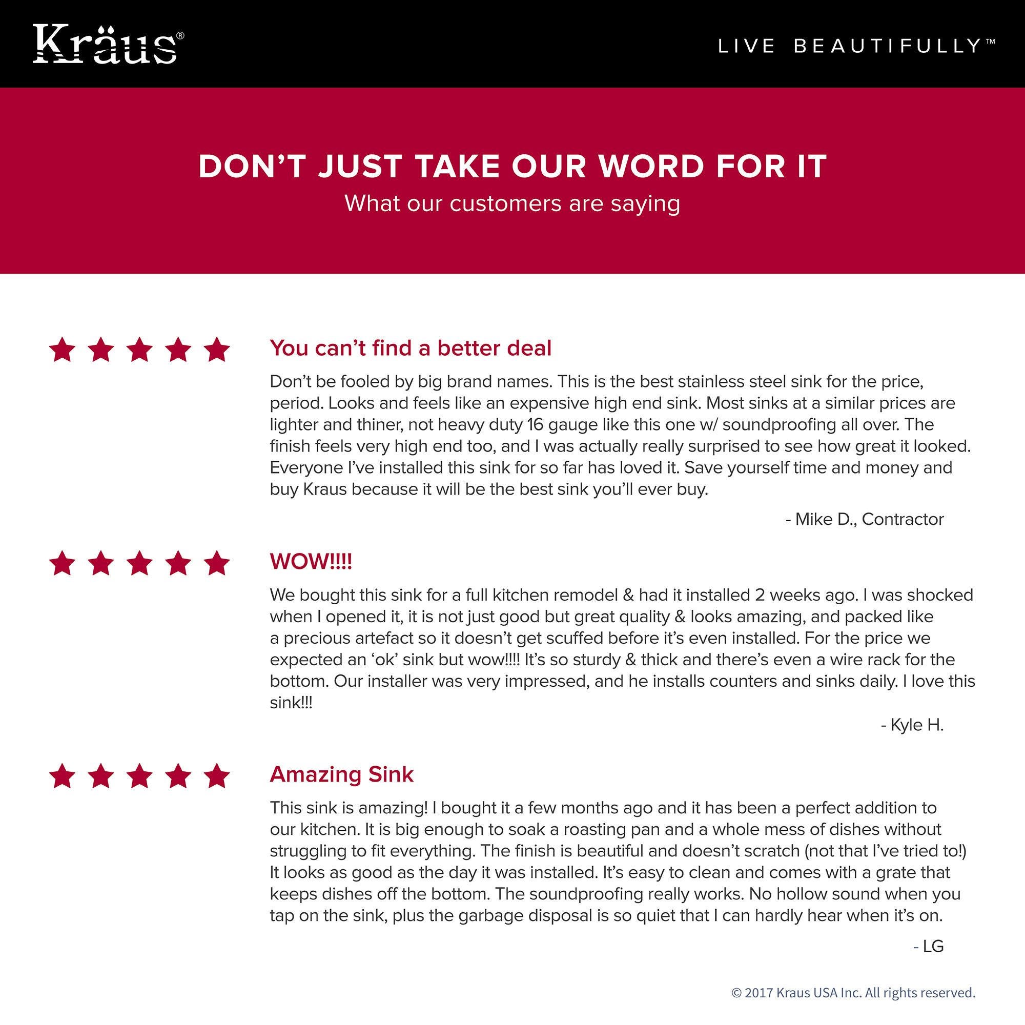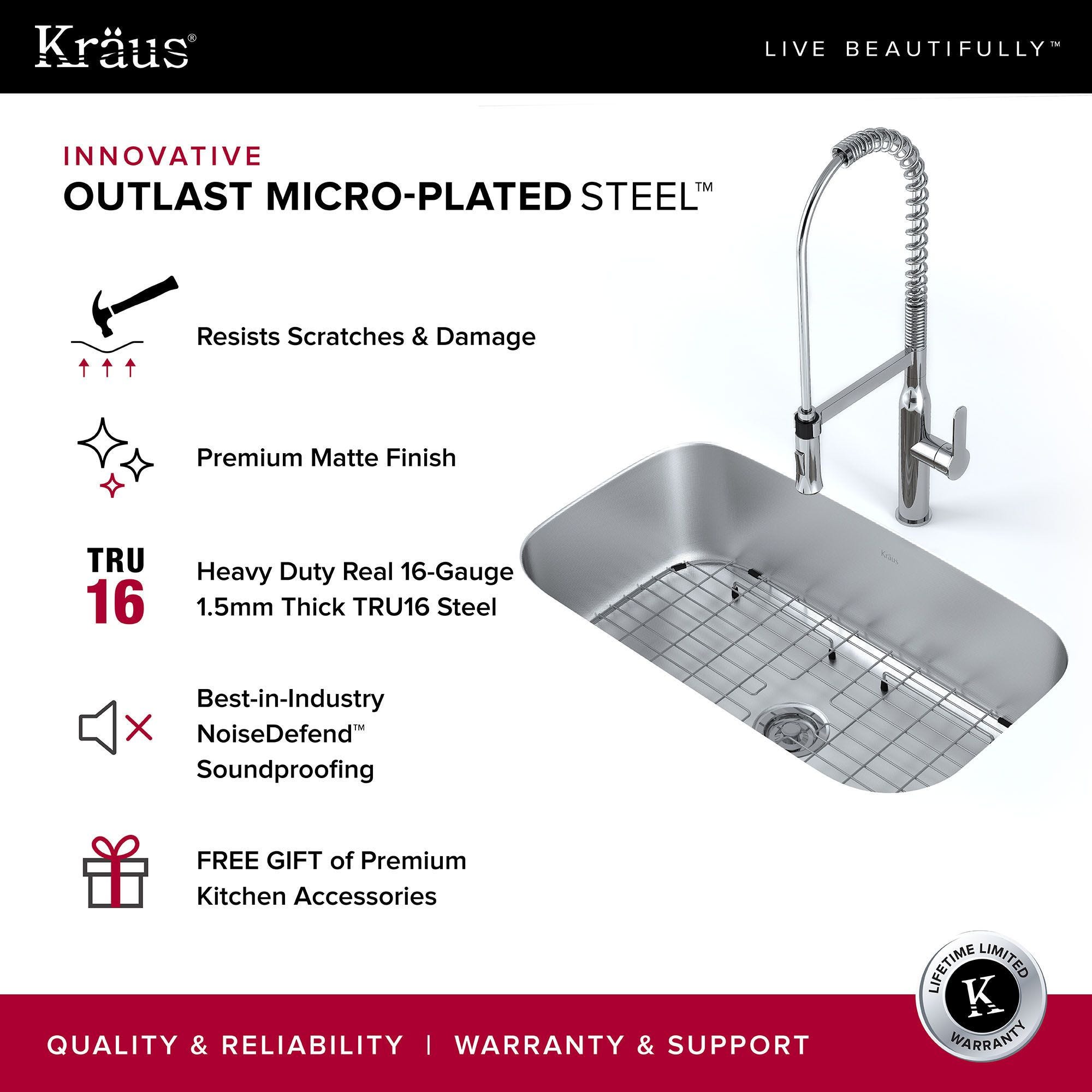 다음의 요구 사항을 처리하도록 설계되었습니다. 가장 분주한 주방인 Kraus Outlast MicroShield 스크래치 방지 스테인리스 스틸 싱크대는 사용량이 많은 경우에도 최대의 내구성을 제공합니다. 엔지니어링 소재는 긁힘과 흠집을 가려주어 새 것과 같은 외관을 유지합니다. 각 Kraus 는 각인된 강철판 한 장으로 만들어집니다. 엠보싱 패턴으로 찌그러짐이나 손상에 대한 저항력이 뛰어납니다. 최첨단 제조 공정으로 질감 있는 표면을 만들어 일상적인 사용으로 인한 손상을 방지합니다. Kraus 를 살펴보고 바쁜 업무에 딱 맞는 솔루션을 찾아보세요. 부엌.