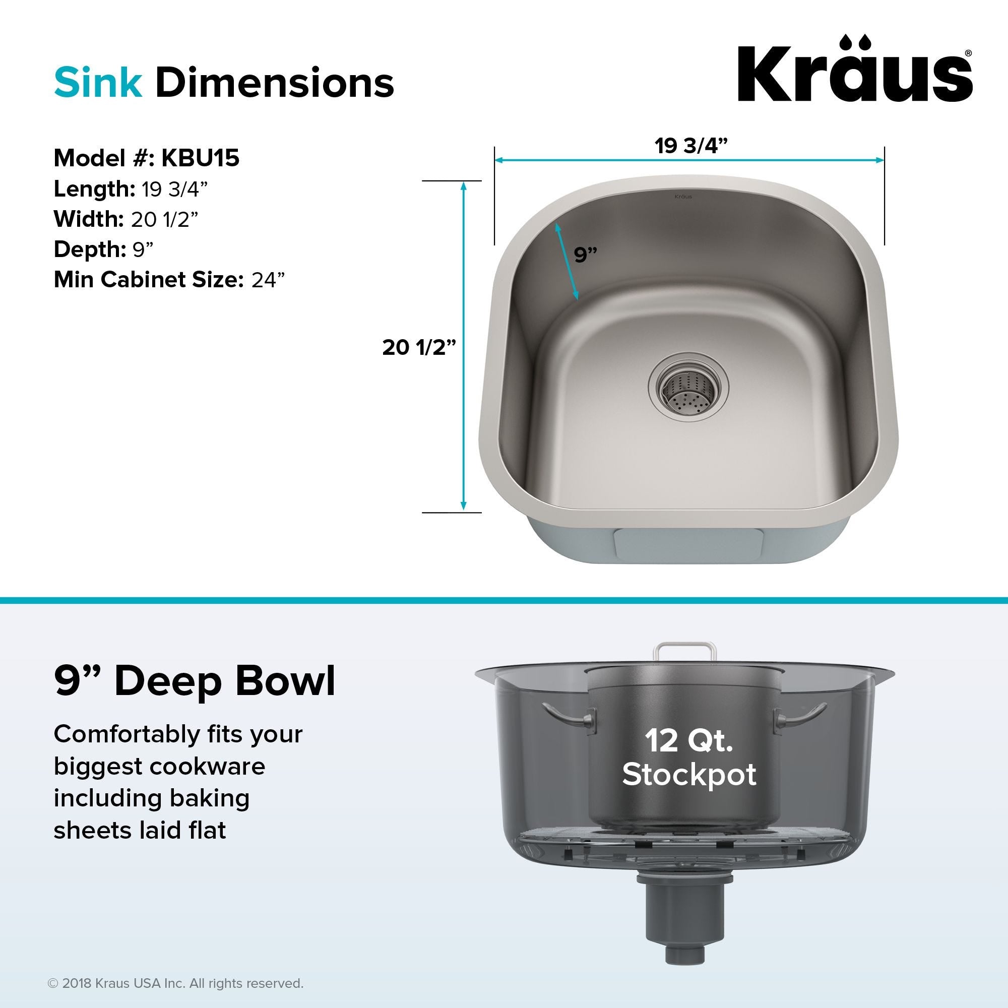 20" 언더마운트 16G 스텐레스 싱글볼 주방 싱크대