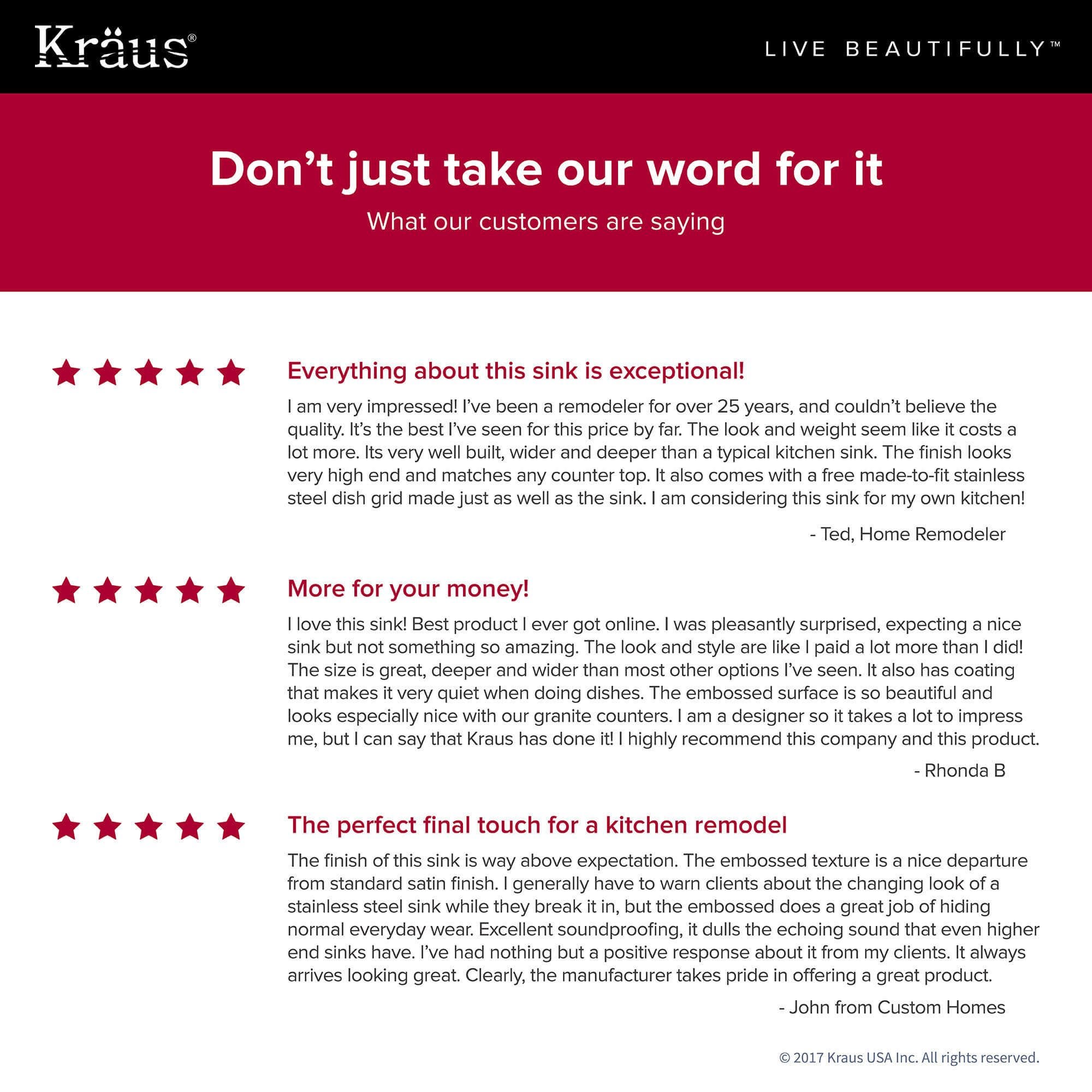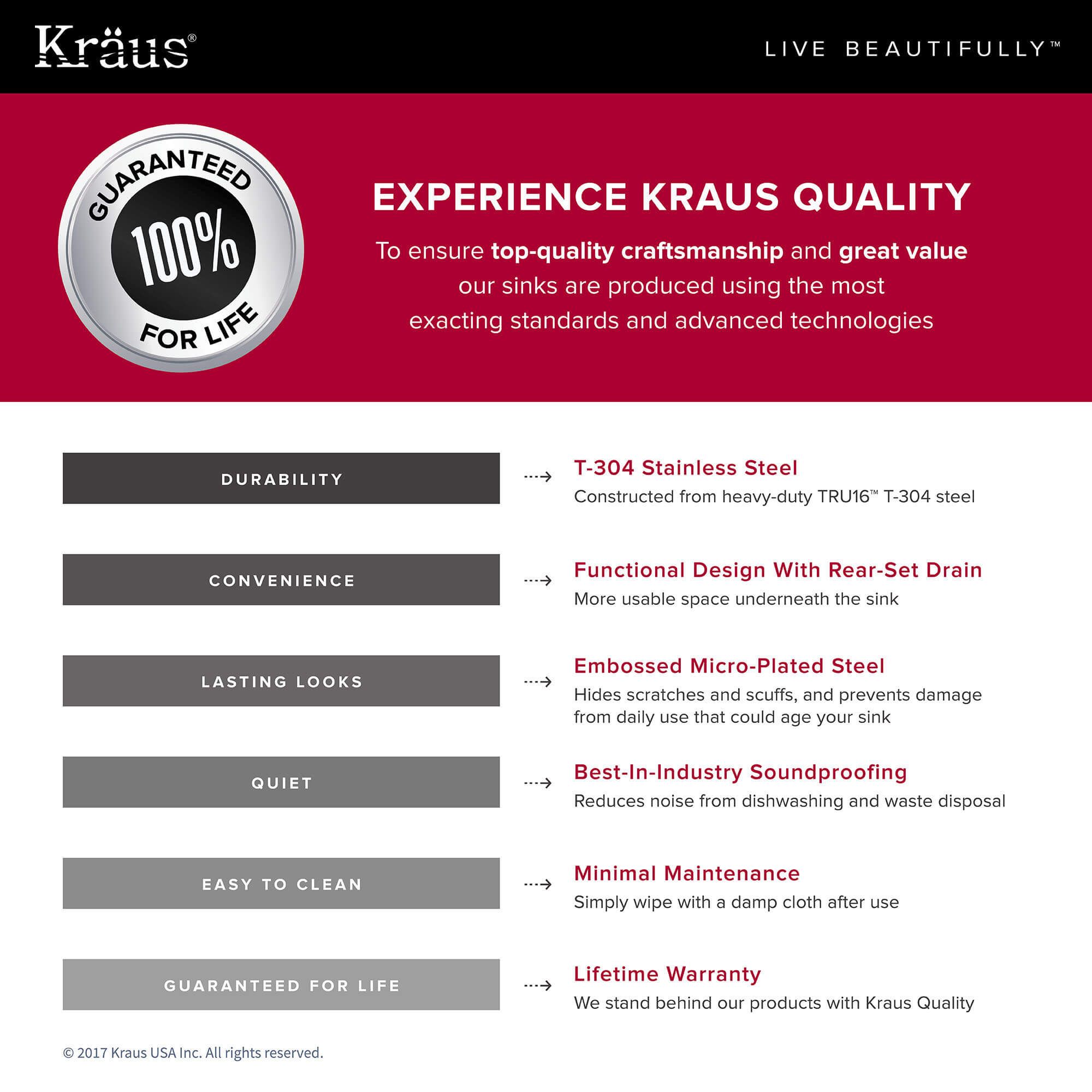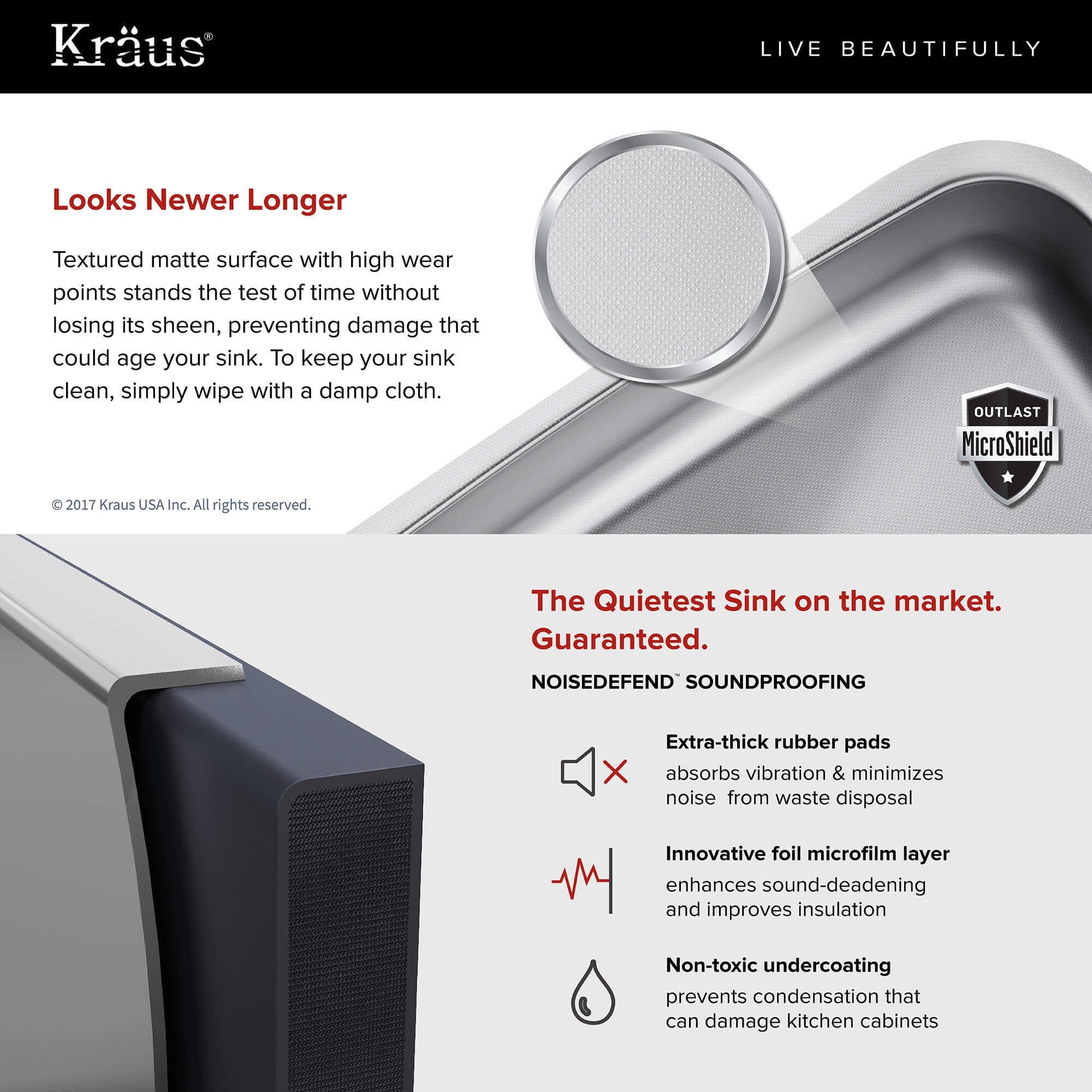 다음의 요구 사항을 처리하도록 설계되었습니다. 가장 바쁜 주방, 크라우스 <스테인리스 스틸 싱크대는 과도하게 사용해도 최대의 내구성을 제공합니다. 엔지니어링 소재는 긁힘과 흠집을 가려주어 새 것과 같은 외관을 유지합니다. 각 Kraus Outlast MicroShield 싱크대는 움푹 들어간 부분과 손상에 대한 탁월한 저항성을 제공하는 양각 패턴이 각인된 단일 강철 시트로 제작됩니다. 최첨단 제조 공정으로 질감 있는 표면을 만들어 일상적인 사용으로 인한 손상을 방지합니다. Kraus Outlast MicroShield 스테인리스 스틸 싱크대를 살펴보고 분주한 주방을 위한 완벽한 솔루션을 찾아보세요.