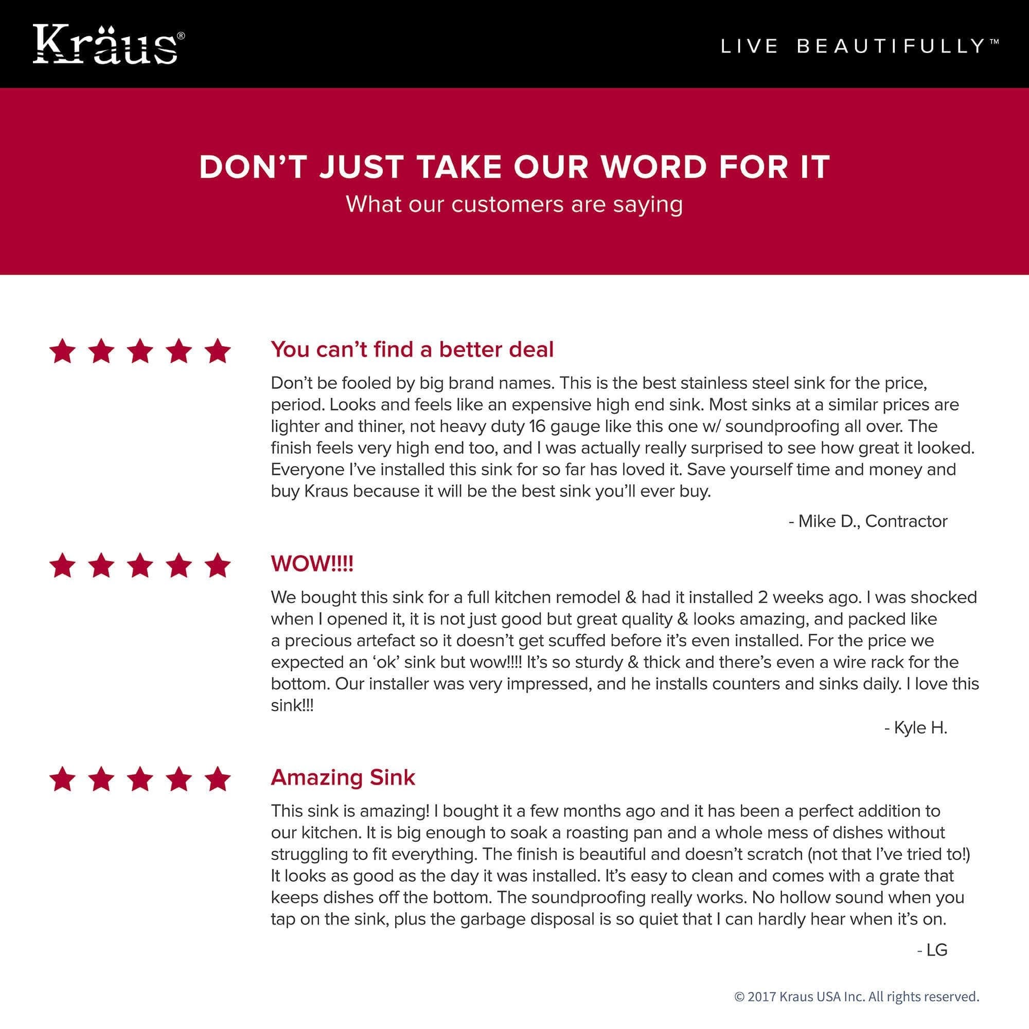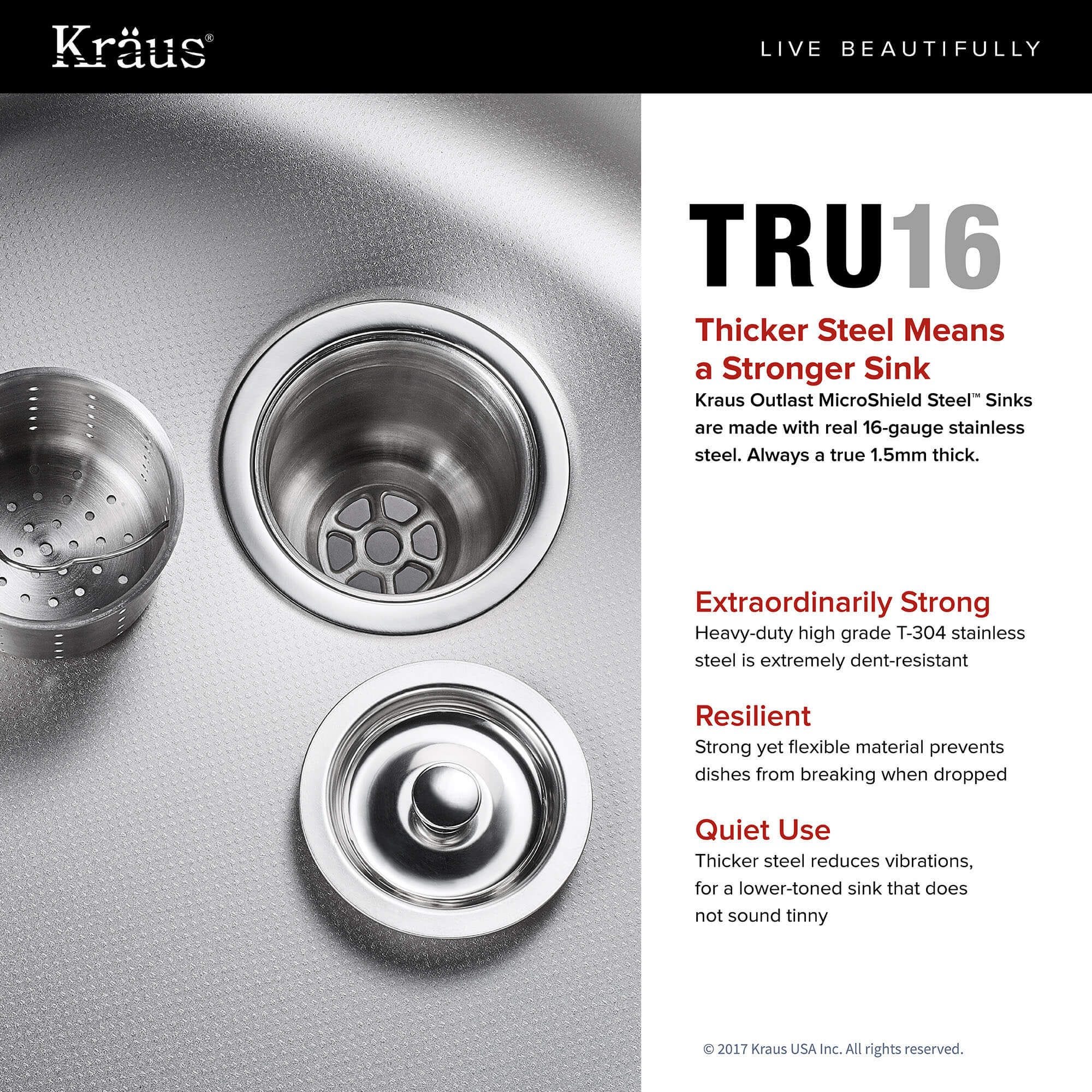 - TRU16 실제 16게이지 강철, 1.5mm 두께로 더 강하고 내구성이 뛰어납니다. 찌그러짐 방지 싱크