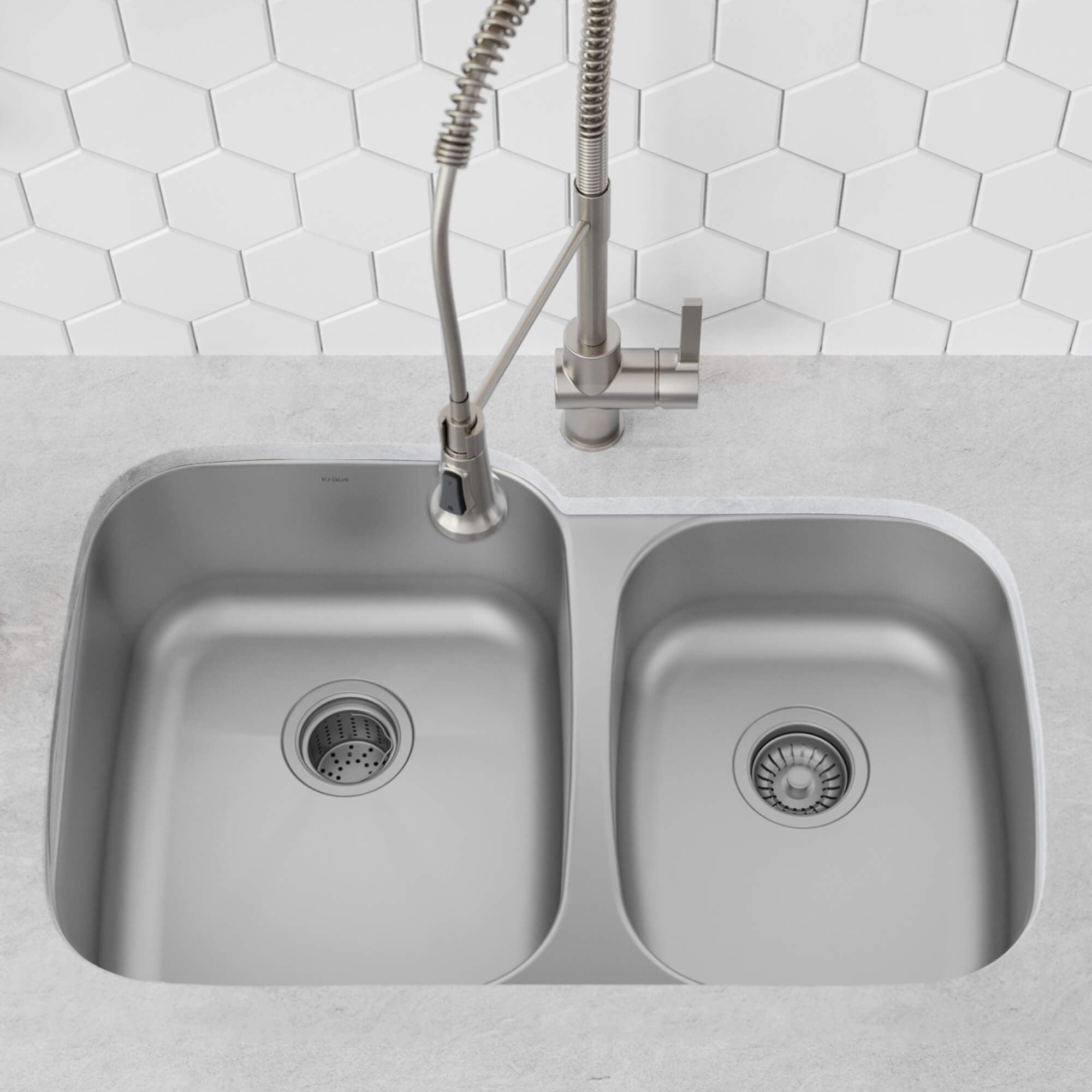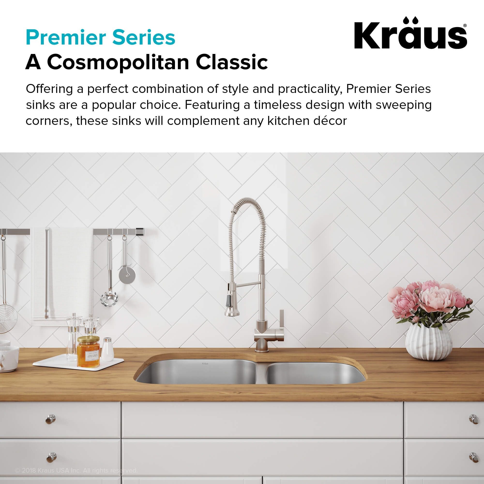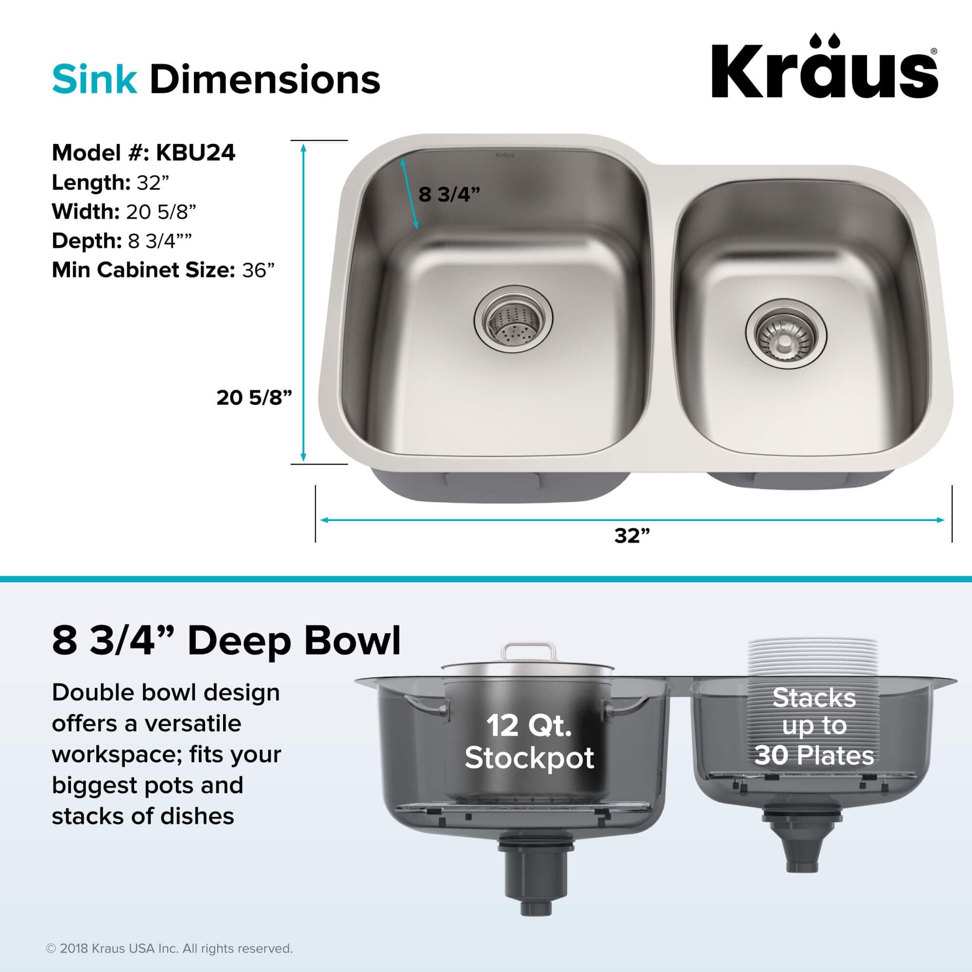 <크라우스 주방 싱크대는 우수한 품질과 견고한 구조로 유명합니다. 내구성이 뛰어난 T-304 스테인리스 스틸로 제작된 이 <언더마운트 싱크대는 지속적인 사용에도 견딜 수 있습니다. , 가장 어려운 주방 작업을 쉽게 처리합니다. 상업용 등급의 새틴 마감 처리로 젖은 천으로 표면을 닦는 것만큼 쉽게 청소할 수 있습니다. 강철이 두꺼울수록 더 강하고 찌그러짐 방지 기능이 뛰어난 싱크대가 되기 때문에 이 모델은 항상 두께가 1.5mm인 TRU16 실제 16게이지 스테인리스 스틸로 제작되었습니다. NoiseDefend 방음 기술은 싱크대 사용 시 소음과 진동을 제거하여 조용한 주방 경험을 보장합니다. 모든 Kraus 스테인리스 스틸 싱크대에는 긁힘 방지 고무 범퍼가 있는 스테인리스 스틸 바닥 그리드를 포함한 무료 주방 액세서리가 함께 제공됩니다.