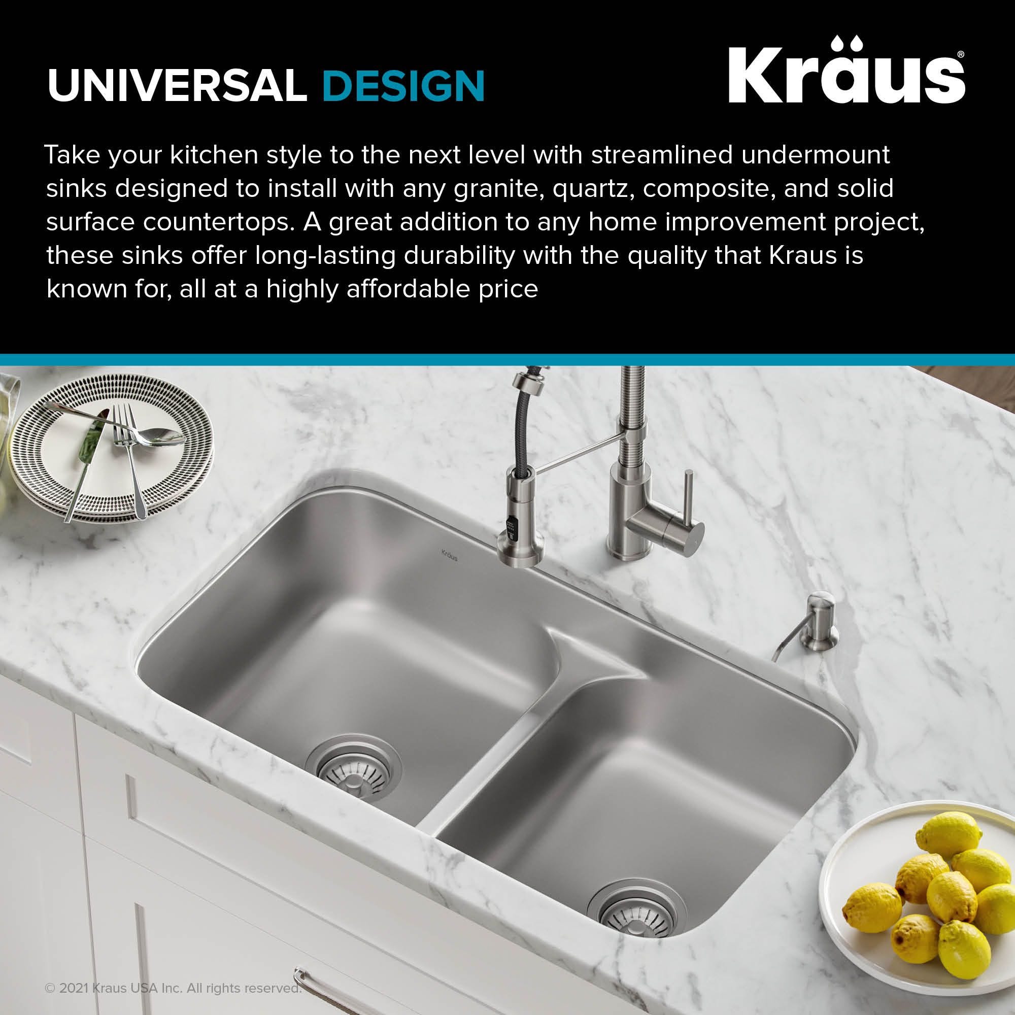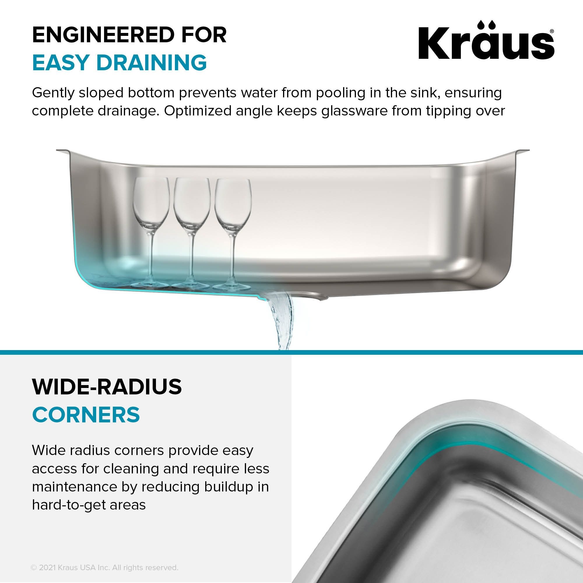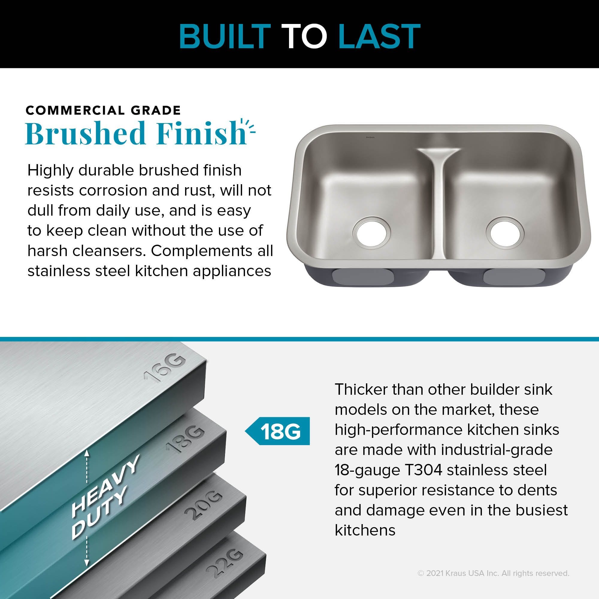 보편적인 매력과 오랫동안 지속되도록 디자인되었습니다. -지속적인 내구성, KRAUS 더블 볼 싱크는 이제 빌더 팩 3개로 제공되므로 대량 가격으로 더 많은 비용을 절약할 수 있습니다. 공간 절약형 EZStack 디자인은 95° 각도의 측벽으로 설계되어 컴팩트한 중첩 스태킹이 가능하고 포장재 낭비를 없애며 설치 준비가 될 때까지 대형 싱크를 쉽게 운반하고 보관할 수 있습니다. 주택 개조 프로젝트나 신축 공사에 완벽하게 추가되는 이 고품질 언더마운트 싱크는 화강암, 석영, 복합재 또는 단단한 표면 조리대와 함께 설치할 수 있습니다. 다재다능한 로우 프로파일 디자인은 다양한 주방 스타일에 적합하며, 어떤 장식에도 잘 어울리는 보편적인 디자인입니다. 시중에서 판매되는 다른 빌더 싱크 모델보다 두꺼운 이 고성능 구조는 견고한 18게이지 T304 스테인리스 스틸을 사용하여 산업 등급의 내구성을 갖추고 찌그러짐과 손상에 대한 탁월한 저항력을 제공합니다. 상업용 등급의 새틴 마감 처리는 부식과 녹에 대한 저항력이 뛰어나며 대부분의 스테인리스 스틸 주방 가전제품과 잘 어울리는 고급스러운 외관을 연출합니다. 언더마운트 설치로 조리대와 싱크대 사이를 원활하게 전환할 수 있어 세련된 외관과 손쉬운 청소가 가능하며, 음식과 잔해물이 갇히는 노출된 마운팅 데크가 없습니다. 특허 받은 NoiseDefend 기술은 싱크대 사용 중에 매우 조용한 환경을 제공하며, 외부의 모든 면을 덮는 두꺼운 슈퍼 소음기 패드로 소음과 진동을 제거합니다. 완벽한 배수를 위해 설계된 대용량 싱크대는 가장 큰 조리기구와 접시 더미를 수용합니다. 낮은 칸막이가 있는 이중 그릇 디자인은 한 번에 여러 작업을 처리할 수 있는 추가된 다기능성을 제공하며, 두 개의 싱크대 위에 큰 식기를 세척할 수 있는 여유 공간이 있습니다. 빠르고 쉬운 설치를 위해 패키지에는 컷아웃 템플릿과 각 싱크에 필요한 장착 하드웨어가 포함되어 있습니다.