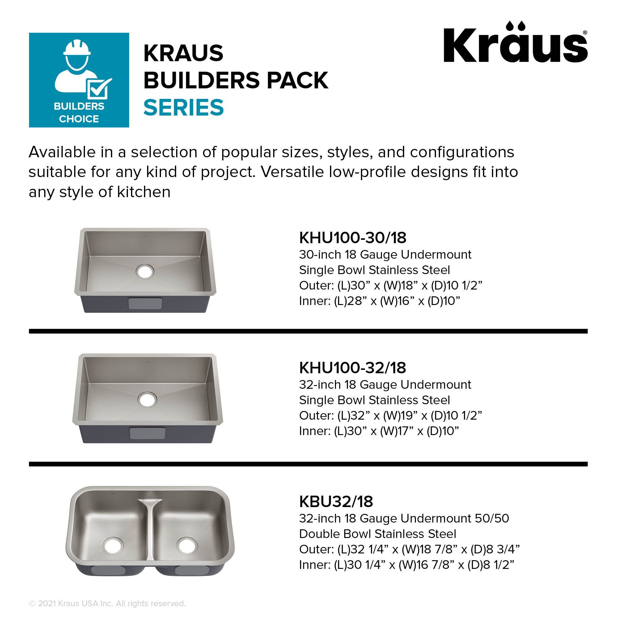 - 평생 제한 보증: 신뢰할 수 있는 품질을 제공하는 Kraus Builder Pack 싱크에는 주거용 애플리케이션에 대한 평생 제한 보증이 함께 제공됩니다.