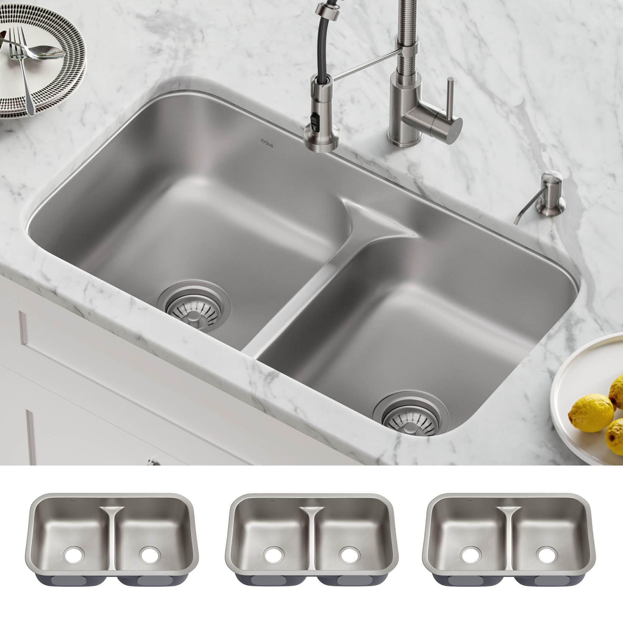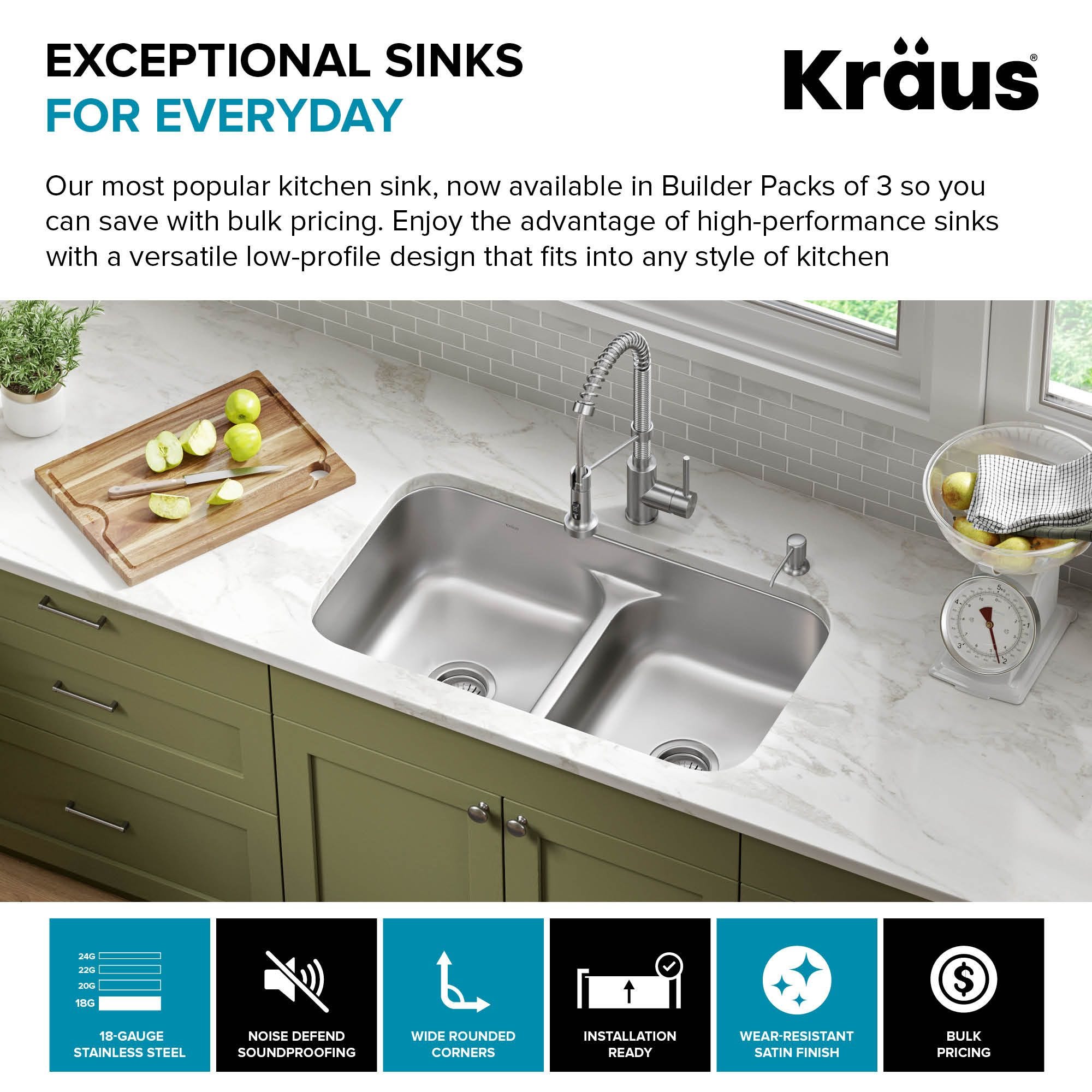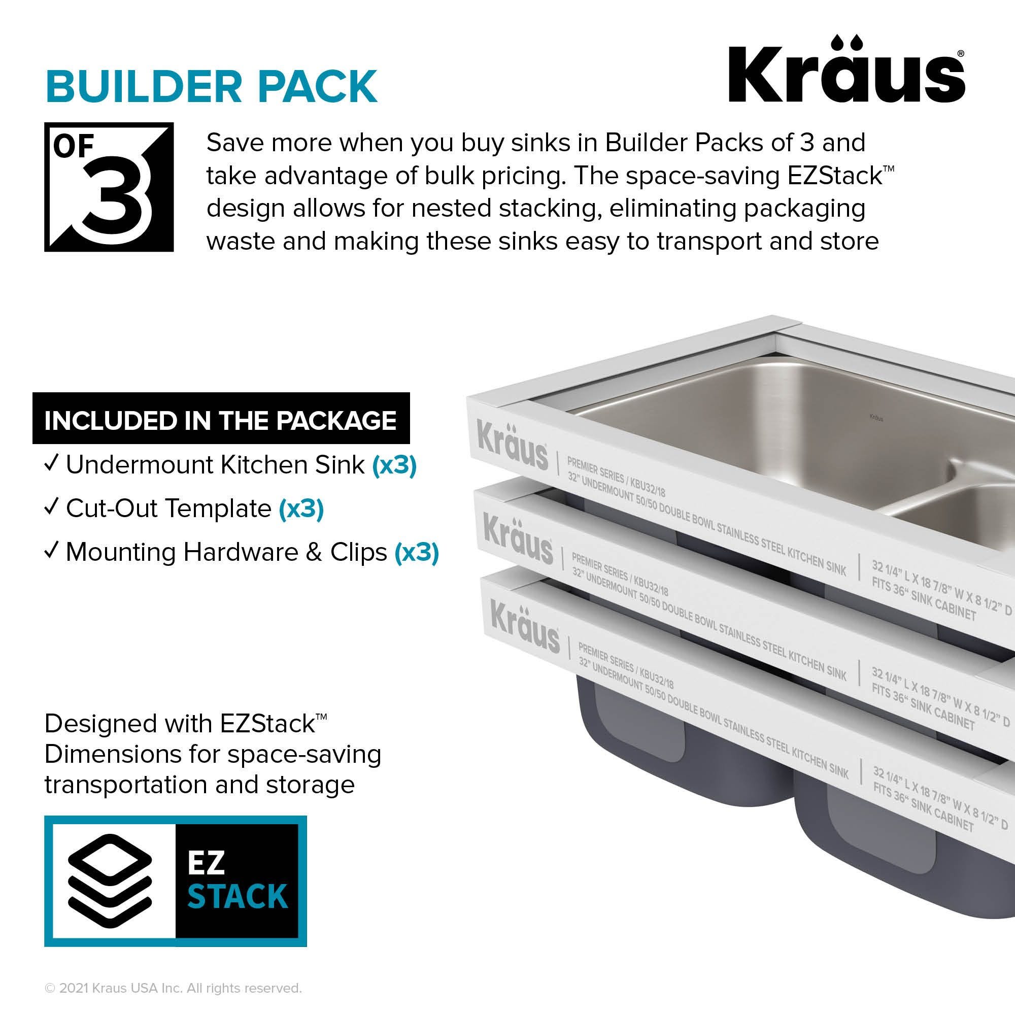 - 빌더 팩 3개: 가장 인기 있는 주방 싱크대를 대량 가격으로 누리세요. - 패키지 구성: 스테인리스 스틸 이중 그릇 싱크대 3개, 장착 하드웨어(3개), 조리대 컷아웃(3개)