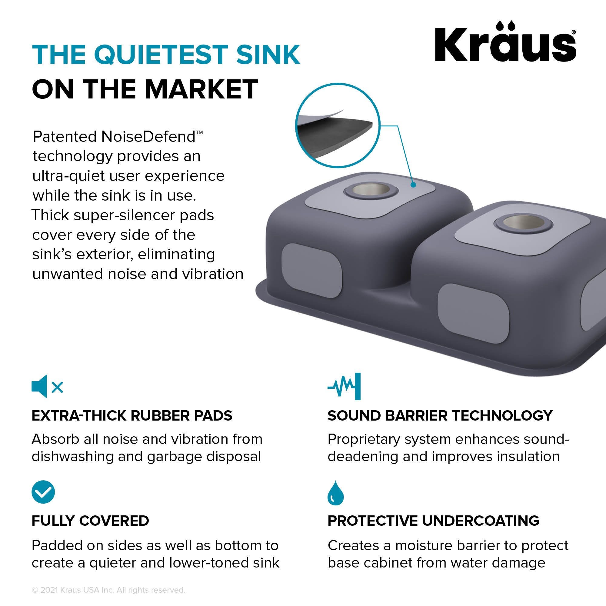 - 우수한 방음: 소음과 진동을 제거하기 위해 싱크대의 모든 측면을 덮는 매우 두꺼운 슈퍼 소음기 패드를 갖춘 매우 조용한 NoiseDefend 기술 결로 방지 언더코팅으로 물 손상을 방지합니다.