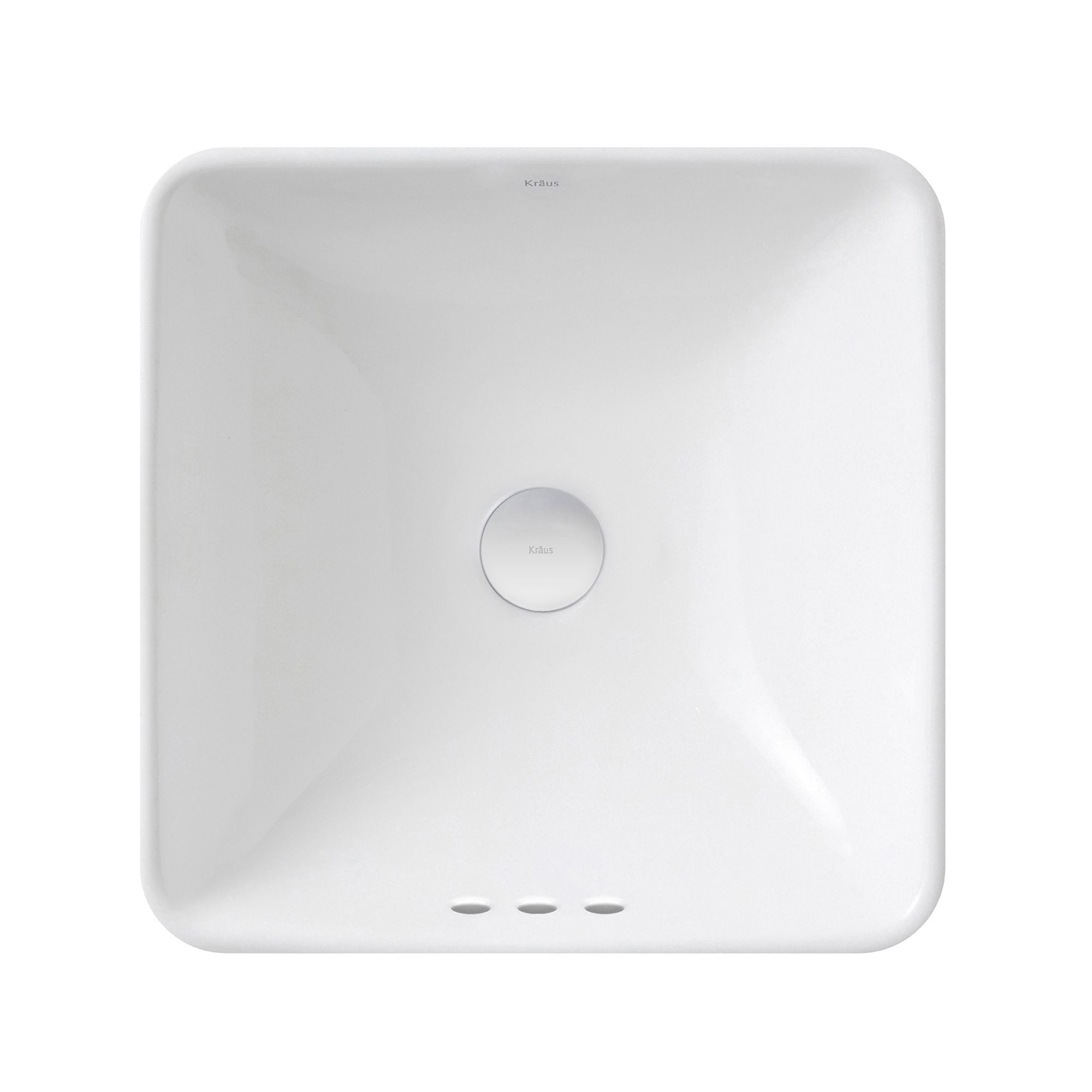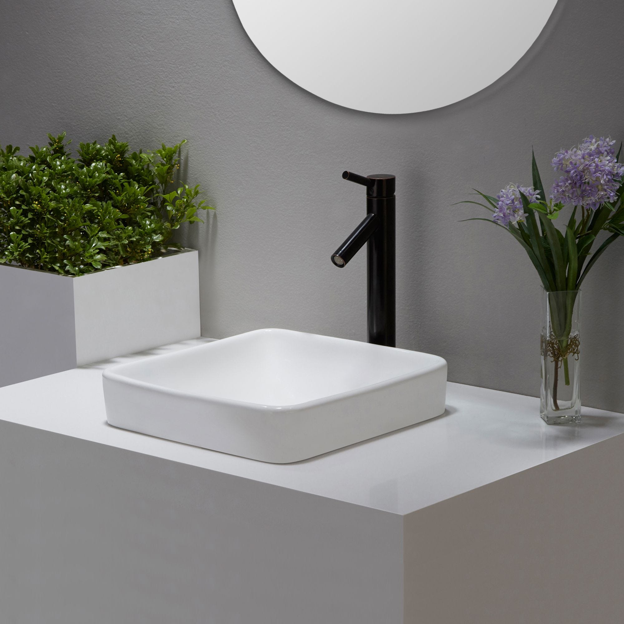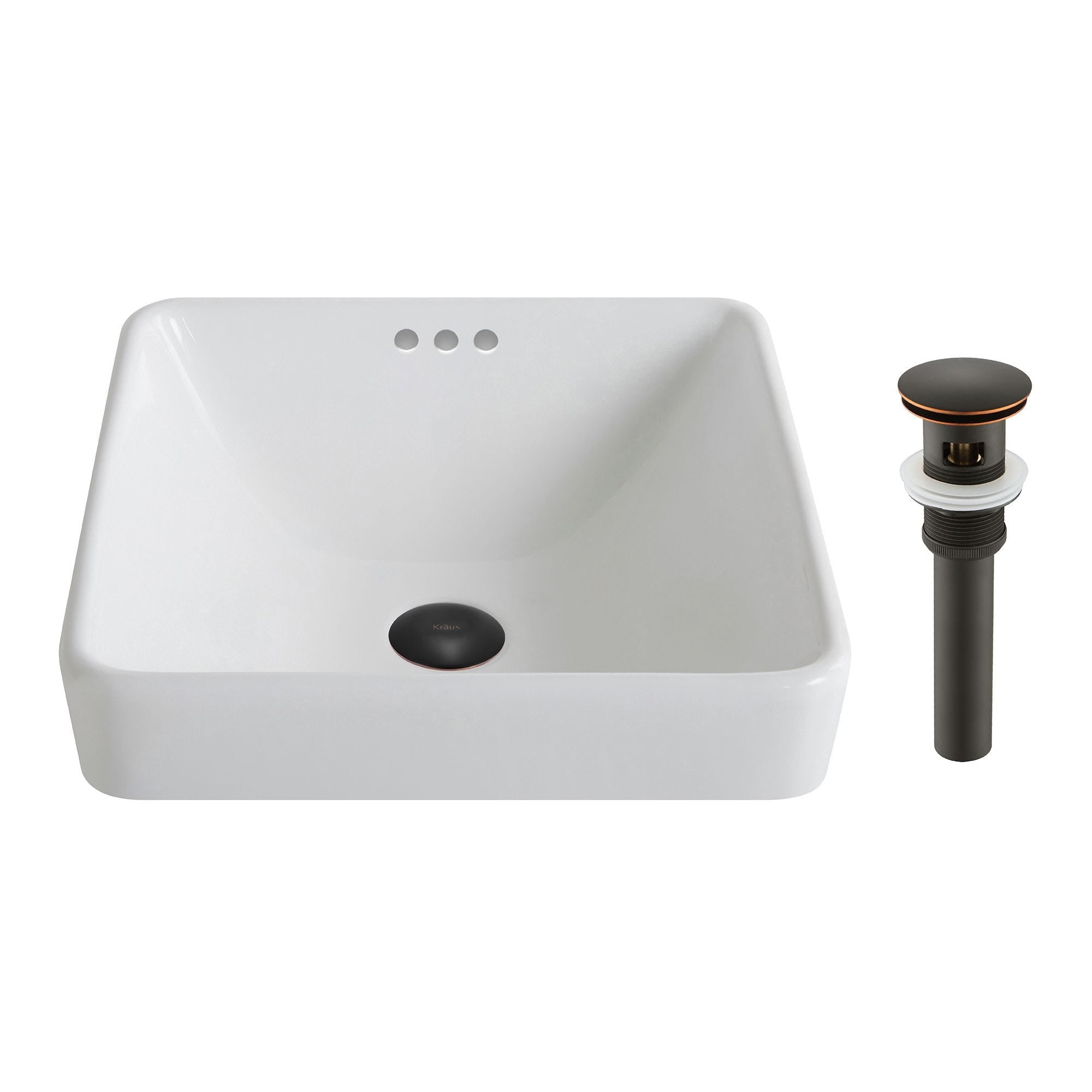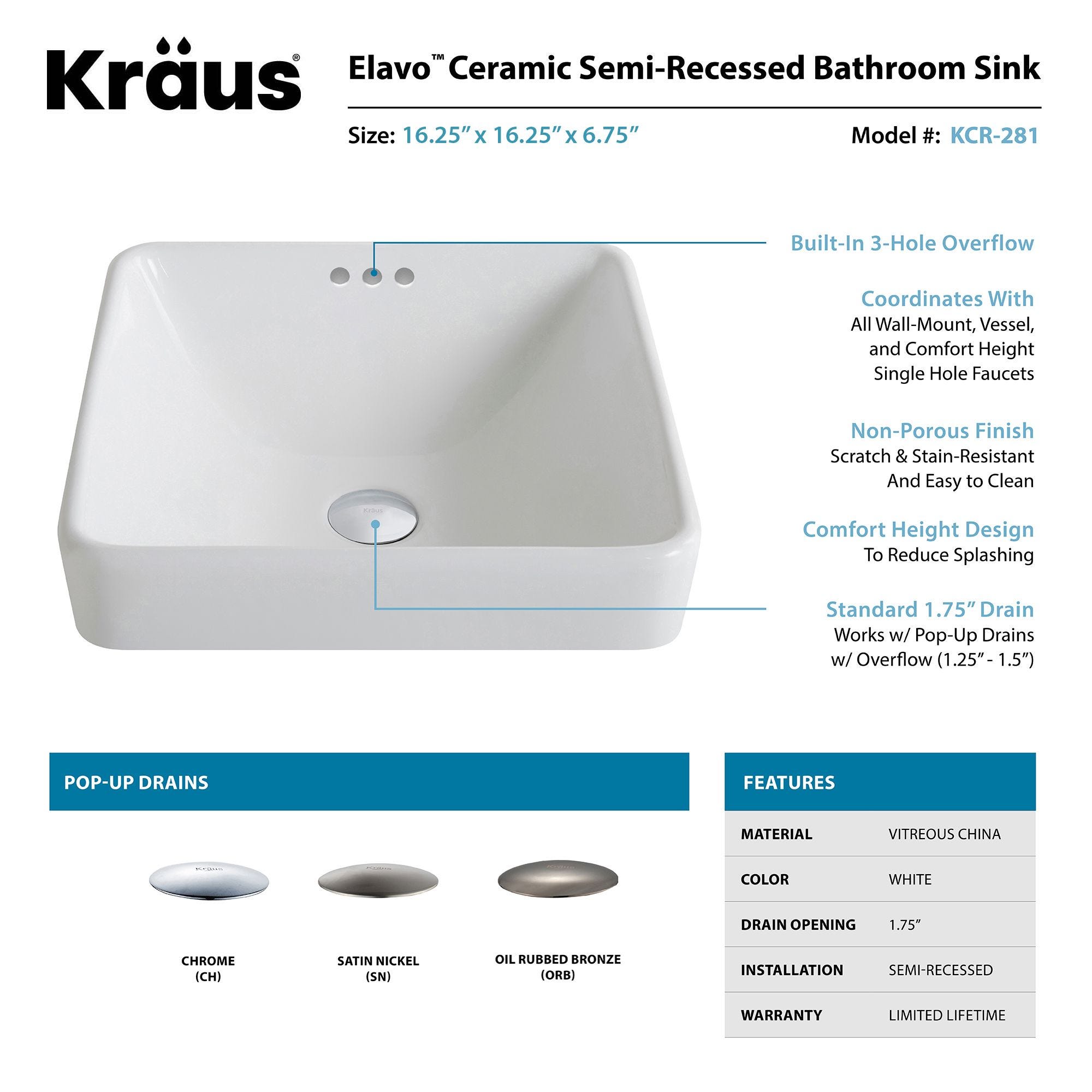 Elavo16 1/2" 정사각볼 반매립 세라믹 세면대(화이트,브론즈 팝업 배수구)