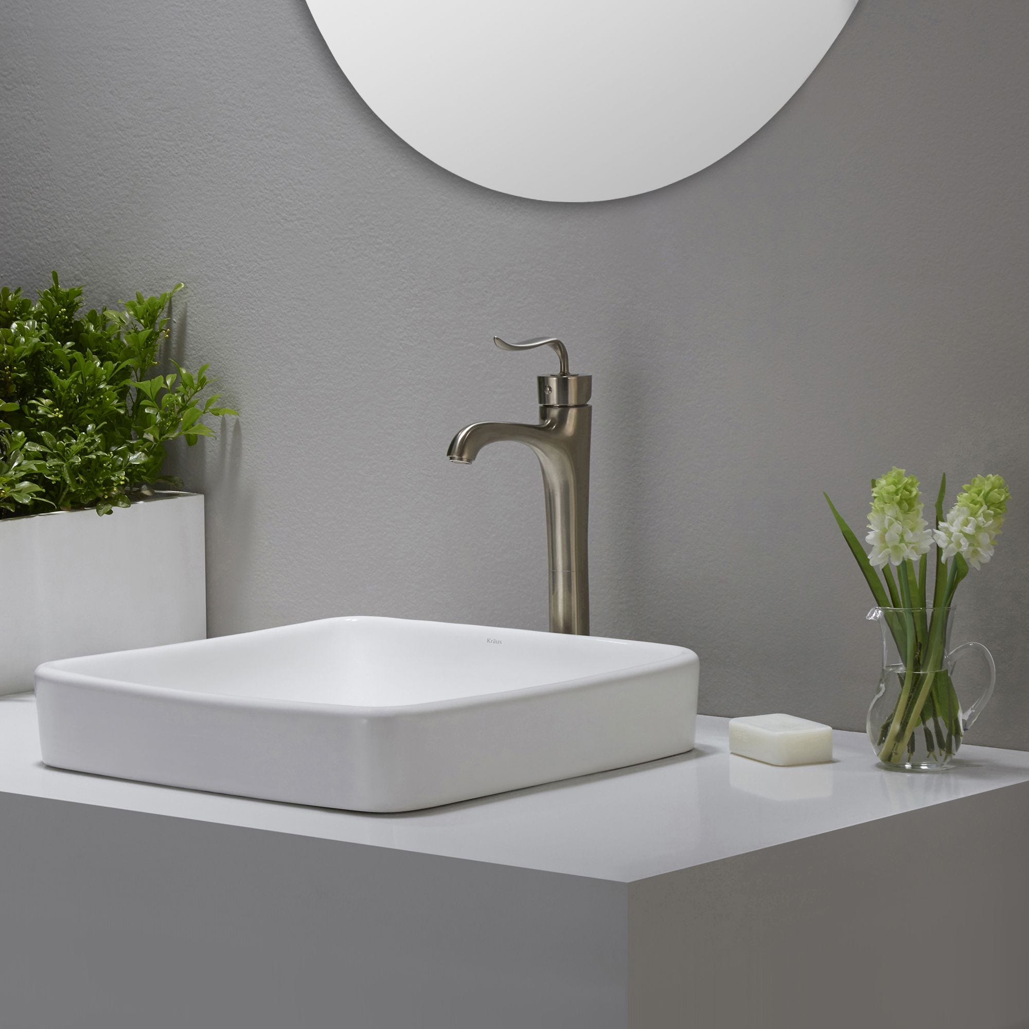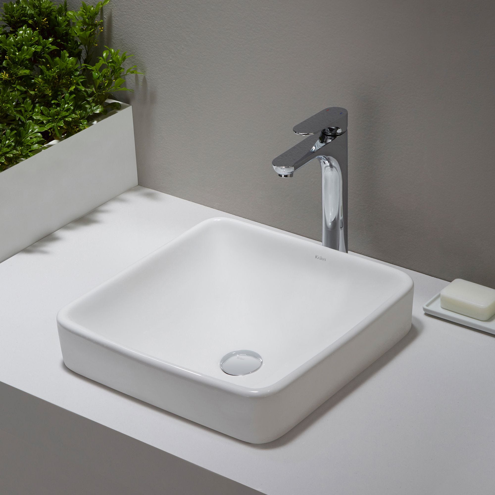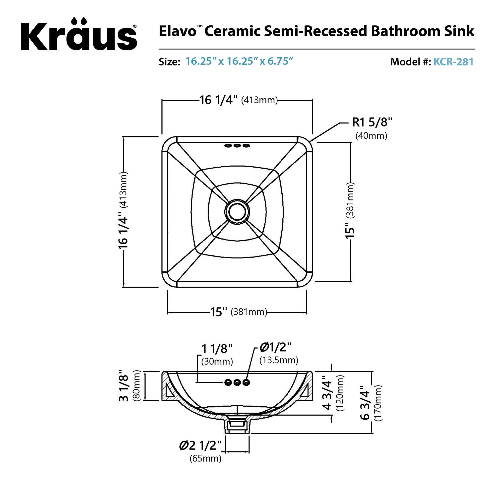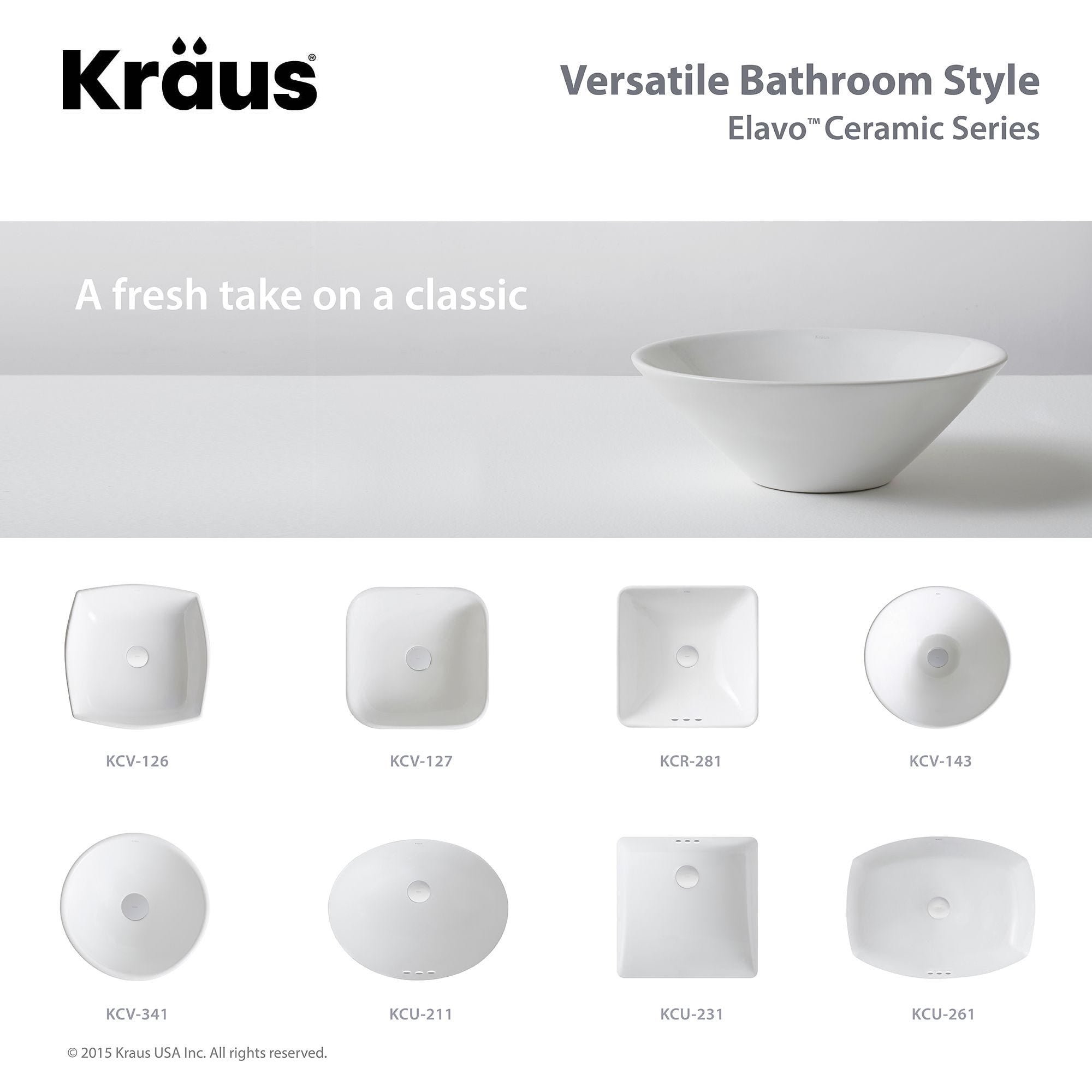 Elavo16 1/2" 정사각볼 반매립 세라믹 세면대(화이트,브론즈 팝업 배수구)
