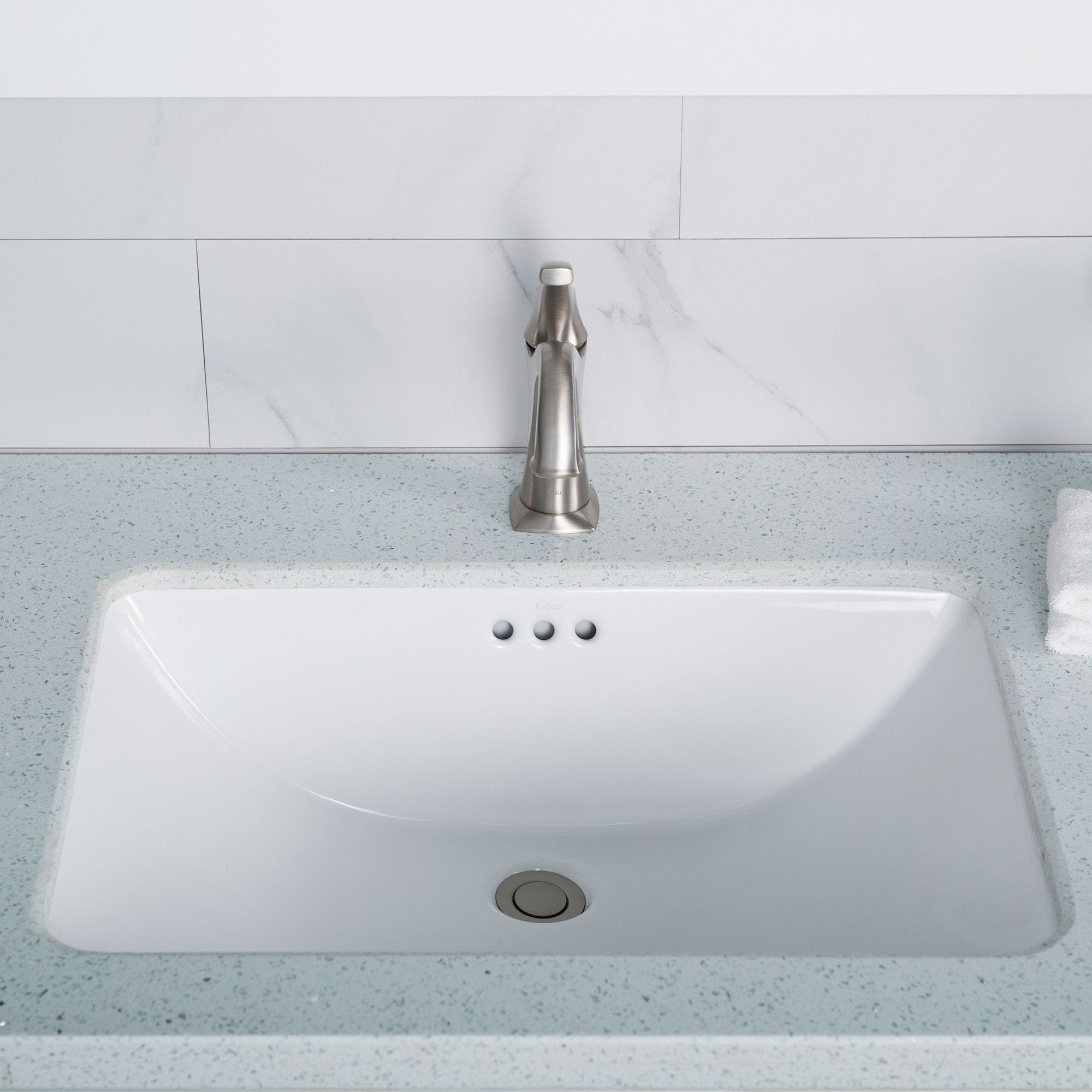Elavo23"직사각볼 세라믹 언더마운트 욕실 세면대(화이트,물넘침 방지 배수)