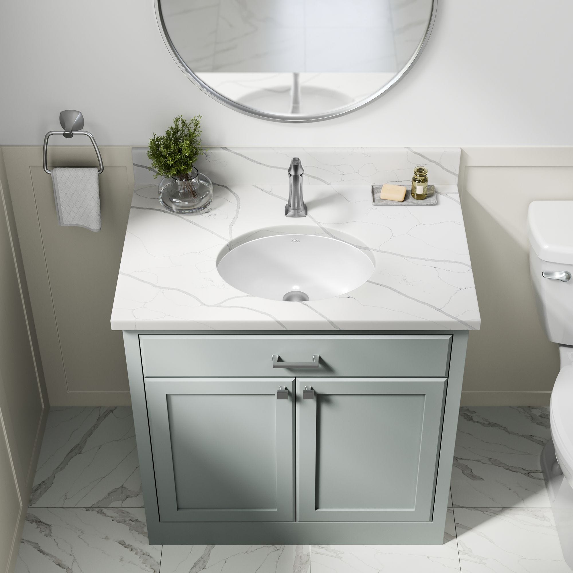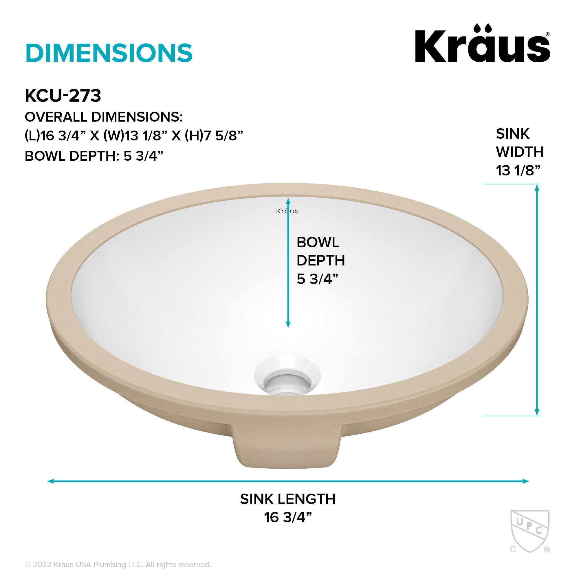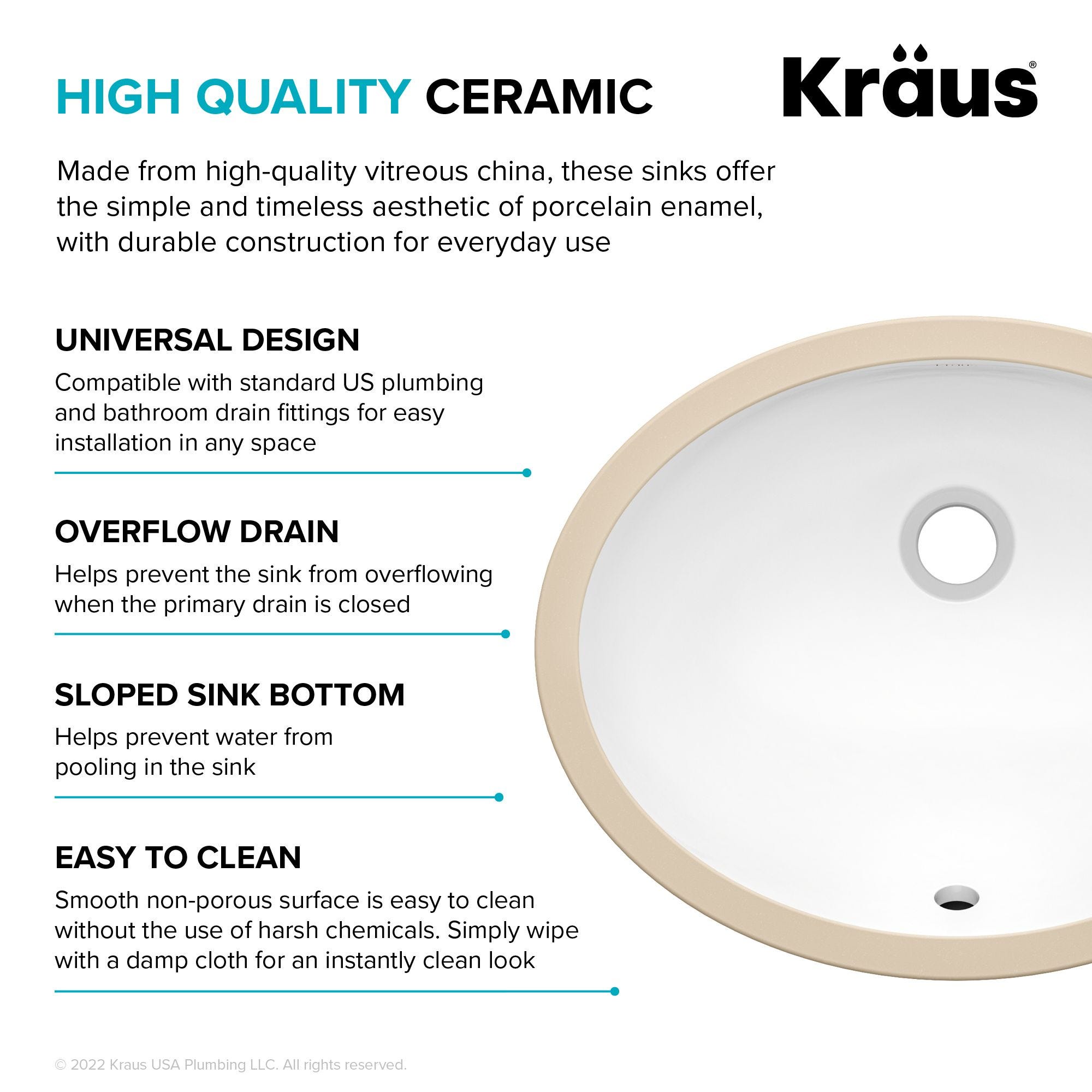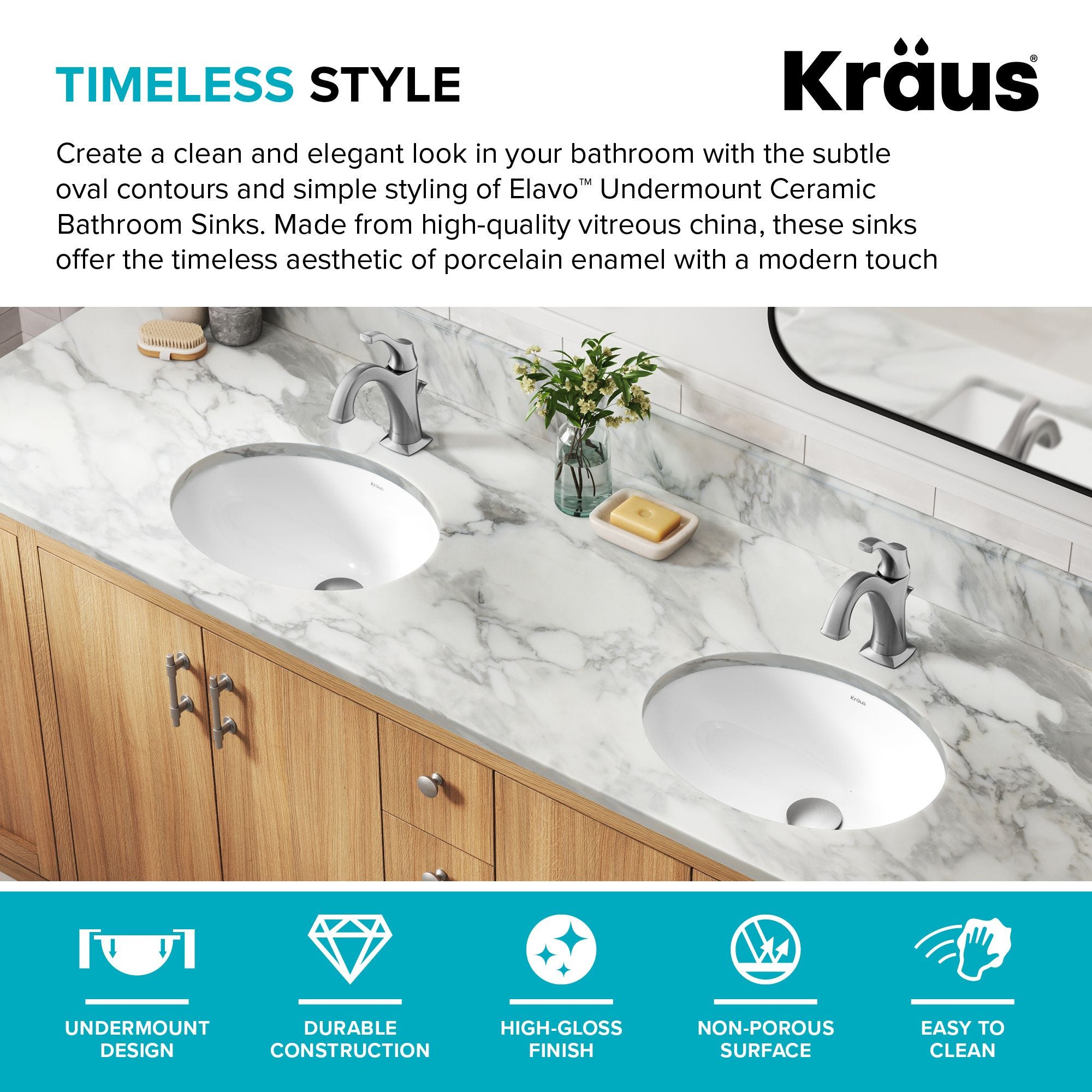 Elavo16 3/4"타원형 도자기 세라믹 언더마운트 세면대(화이트,물넘침 배수 장치)