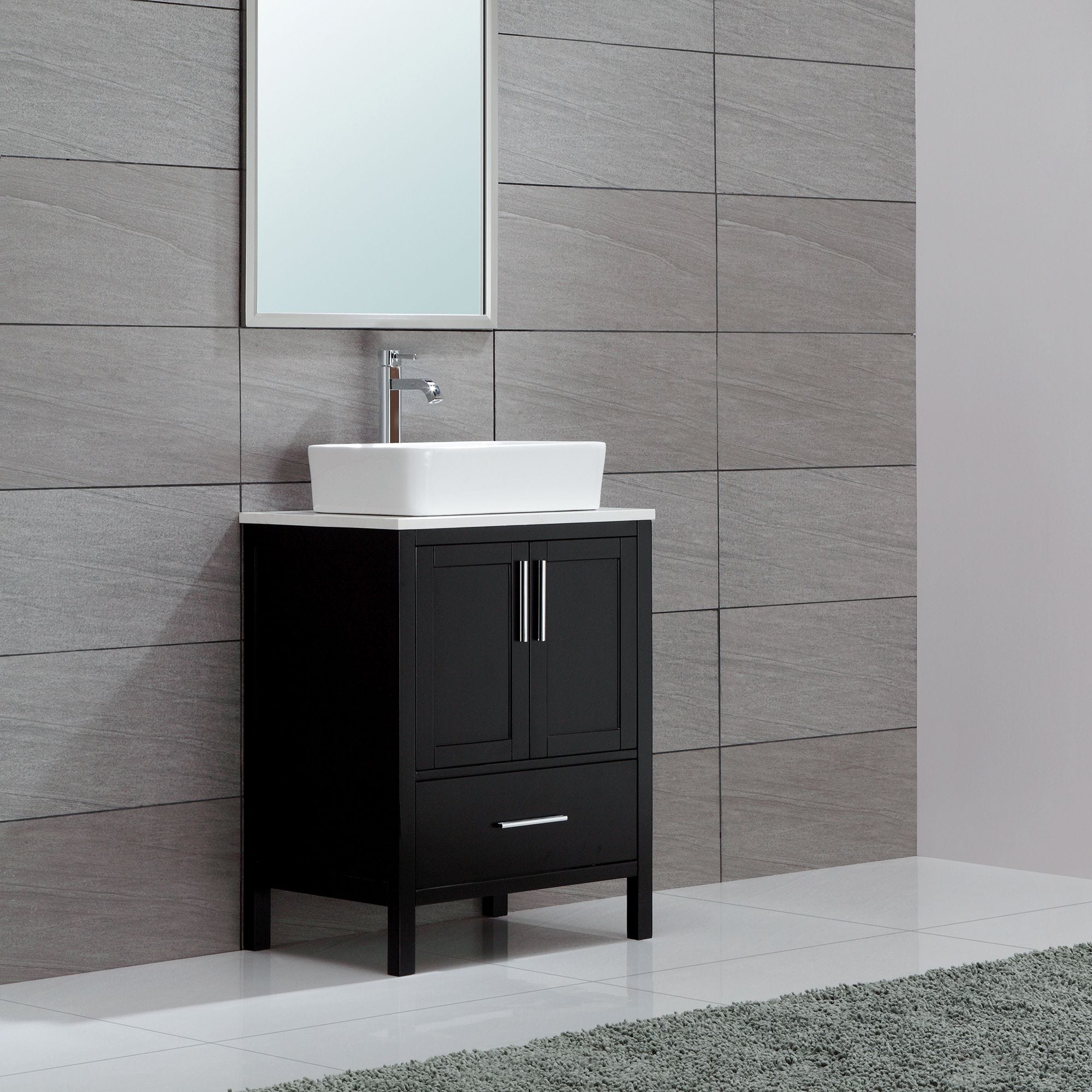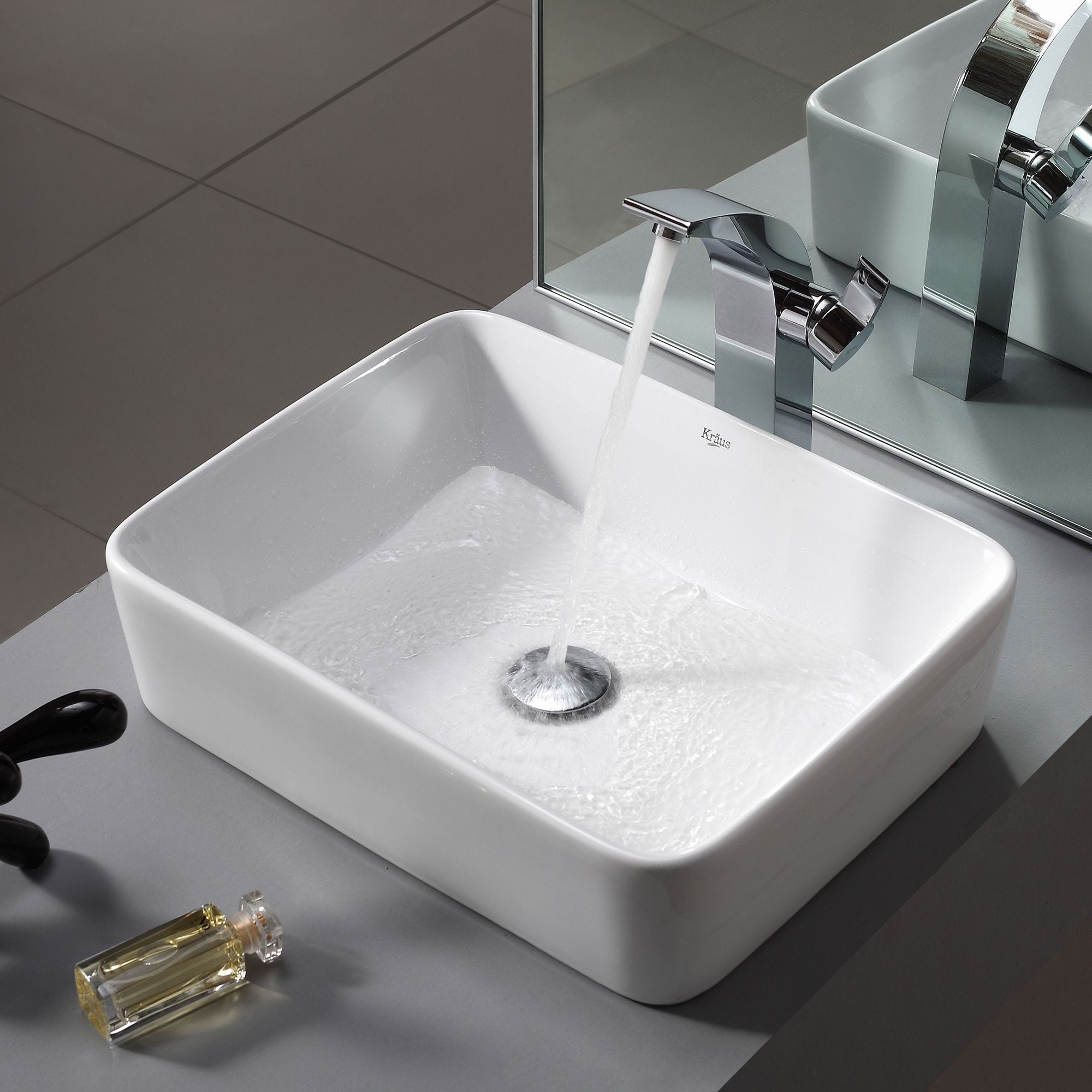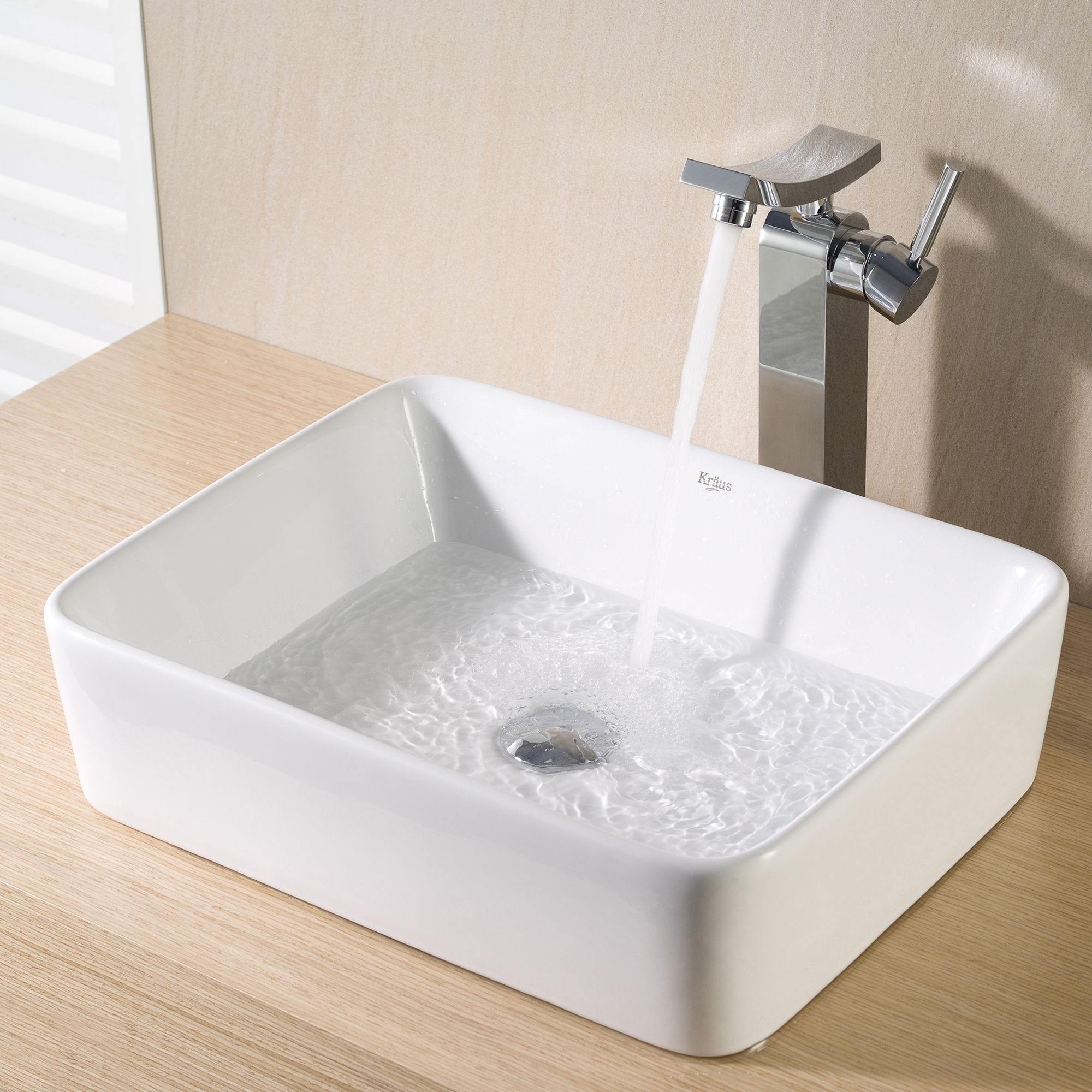Elavo19" 직사각볼 세라믹 욕실 세면대(화이트, 크롬 팝업 배수구)
