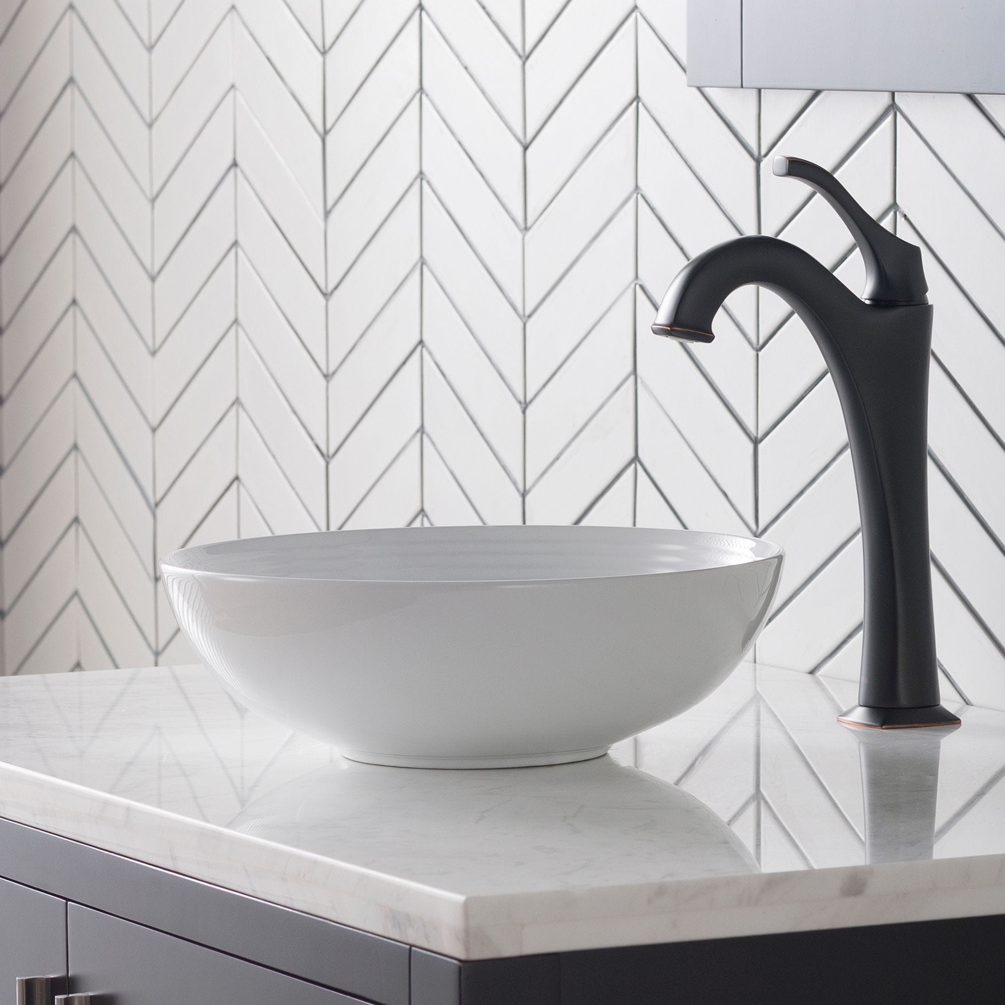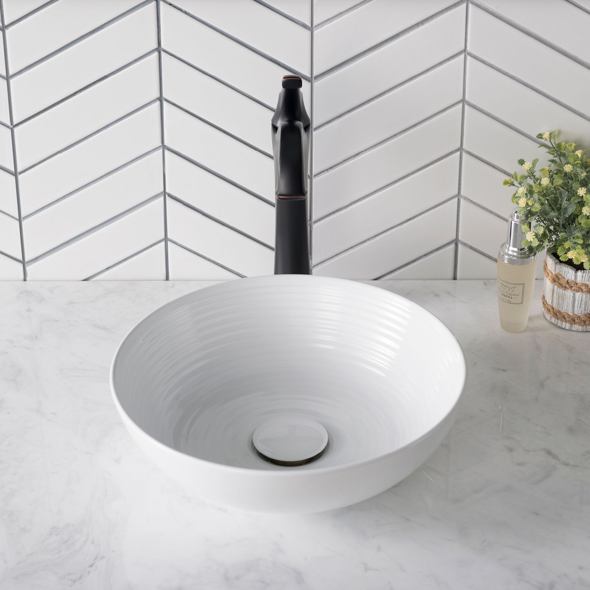 Elavo™13" 원형 세라믹 세면대(화이트)