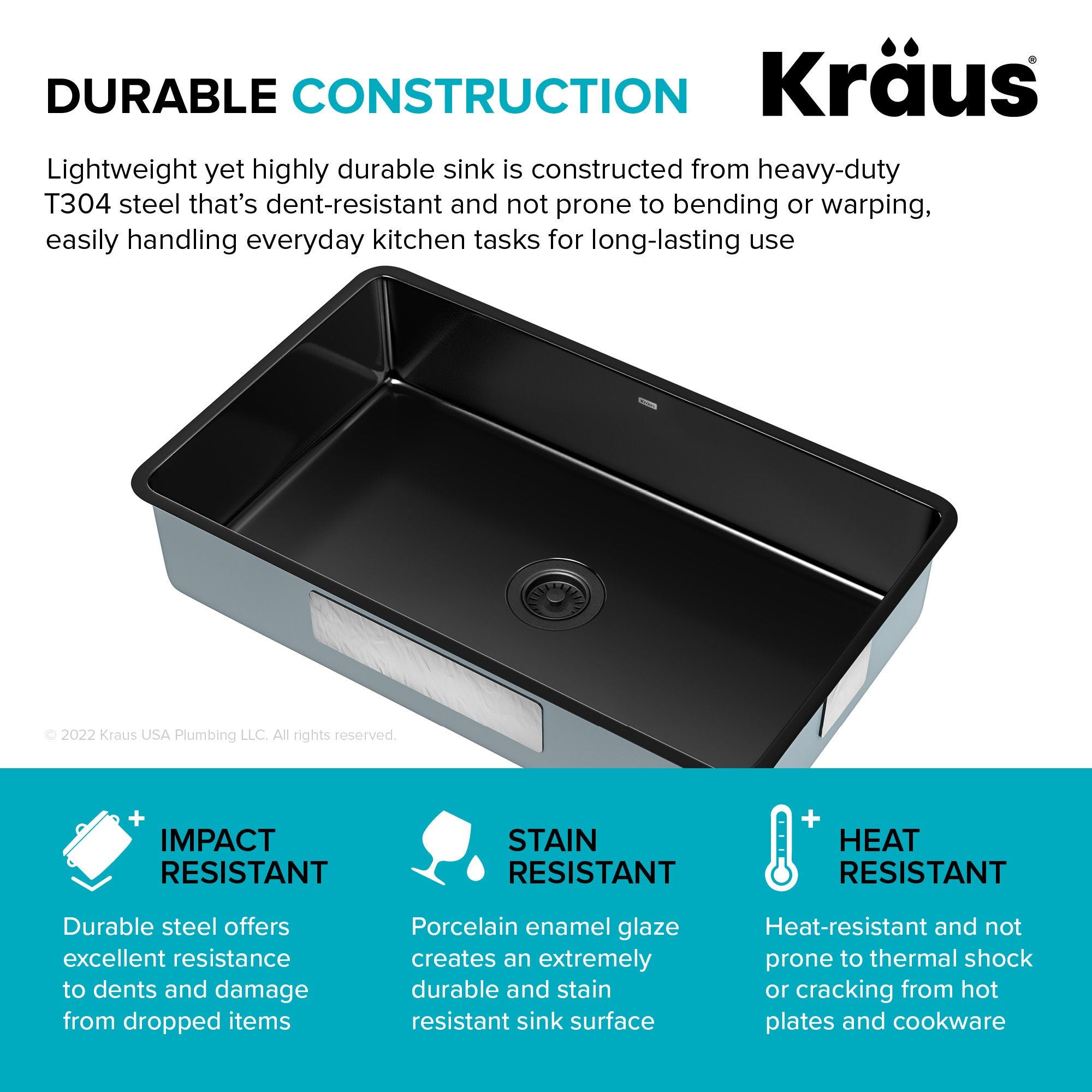 - 탄력 있는 도자기 에나멜 마감재는 1500°F에서 이중 연소되어 충격, 긁힘, 칩 및 식품으로 인한 얼룩에 대한 저항력이 매우 강하고 내구성이 매우 뛰어난 싱크 표면을 만듭니다