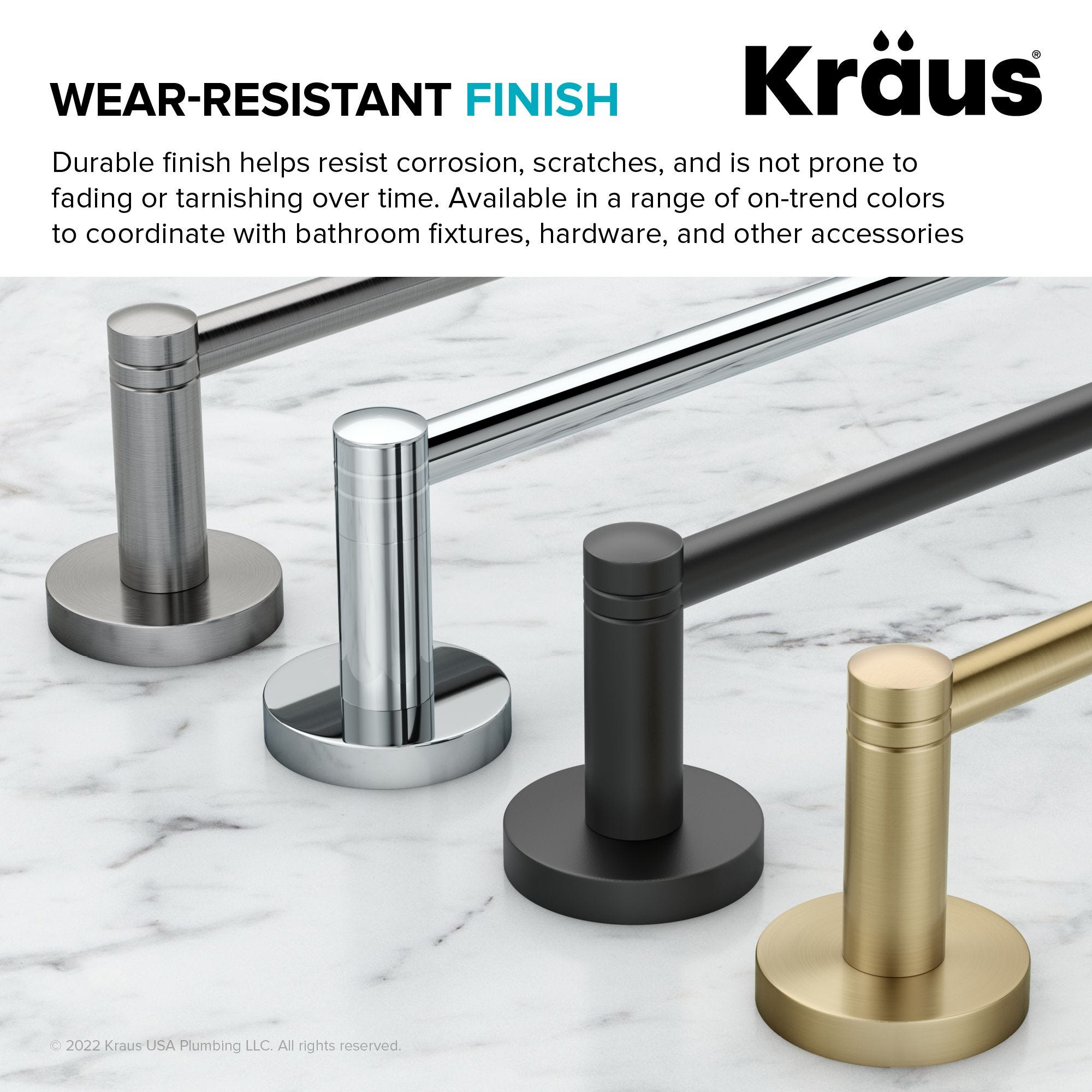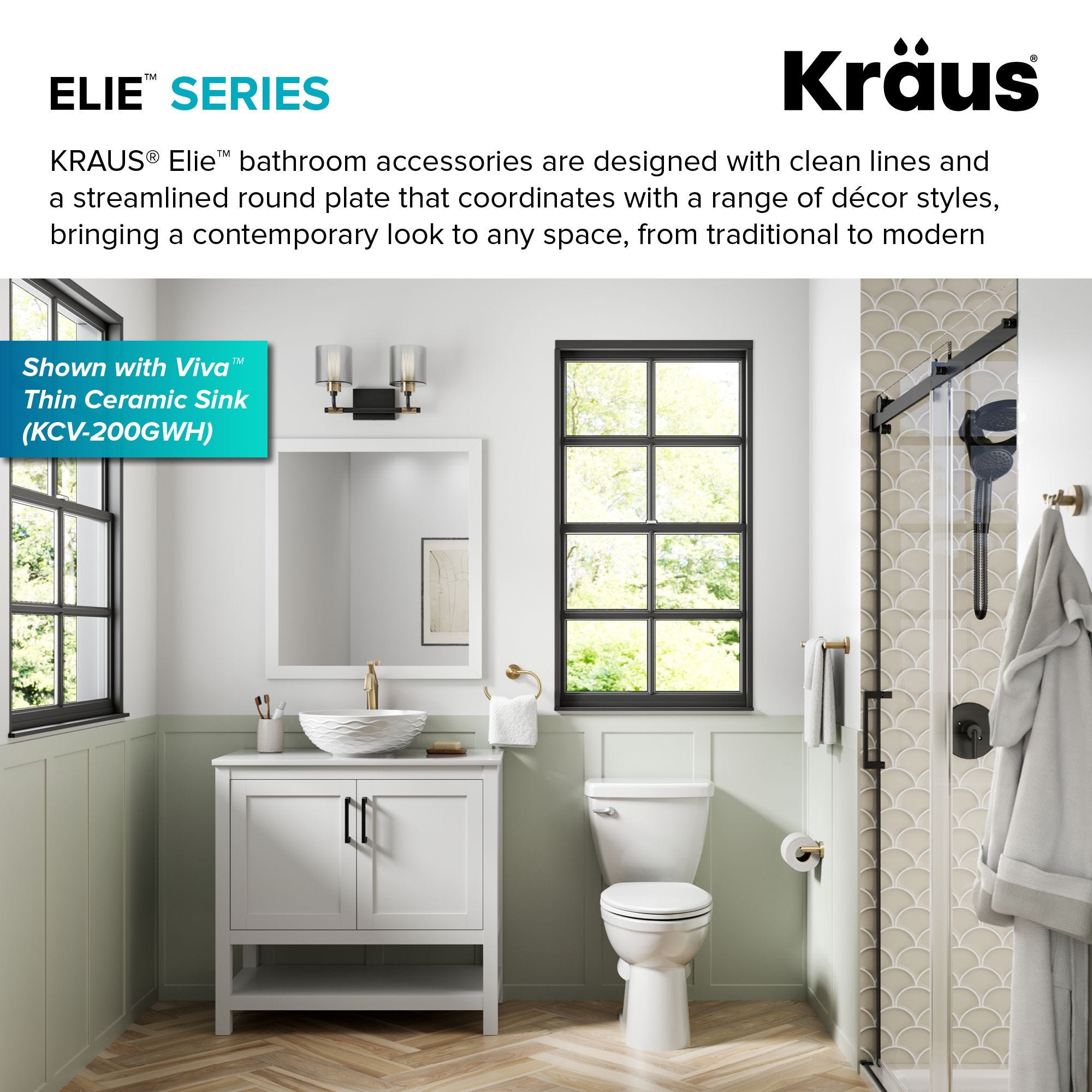 깔끔한 라인과 둥근 윤곽을 갖춘 KRAUS Elie 욕실 액세서리는 모든 욕실 장식에 신선하고 현대적인 느낌을 선사합니다. 이 아름다운 컬렉션은 목욕 가운, 수건 걸이, 화장지 홀더, 수건 고리 등 잘 어울리는 다양한 <욕실 액세서리를 제공합니다. , 수건걸이 등이 응집력 있는 모습을 연출합니다. 마스터 욕실, 파우더룸 또는 손님용 욕실에 이상적인 이 제품군에는 욕실 선반이 포함되어 있어 욕실 세면대나 조리대 공간을 확보하면서 세면도구와 액세서리를 편리하게 보관할 수 있습니다. 최대의 내구성을 위해 견고한 황동으로 제작된 Elie 액세서리는 욕실 하드웨어 및 비품과 쉽게 조화를 이루는 다양한 부식 방지 마감 옵션으로 제공됩니다. 모든 장착 하드웨어는 매끄럽고 중단 없는 외관을 유지하기 위해 숨겨진 나사로 설계되었습니다. 각 액세서리에는 손쉬운 DIY 설치를 위한 자세한 지침이 포함되어 있습니다.