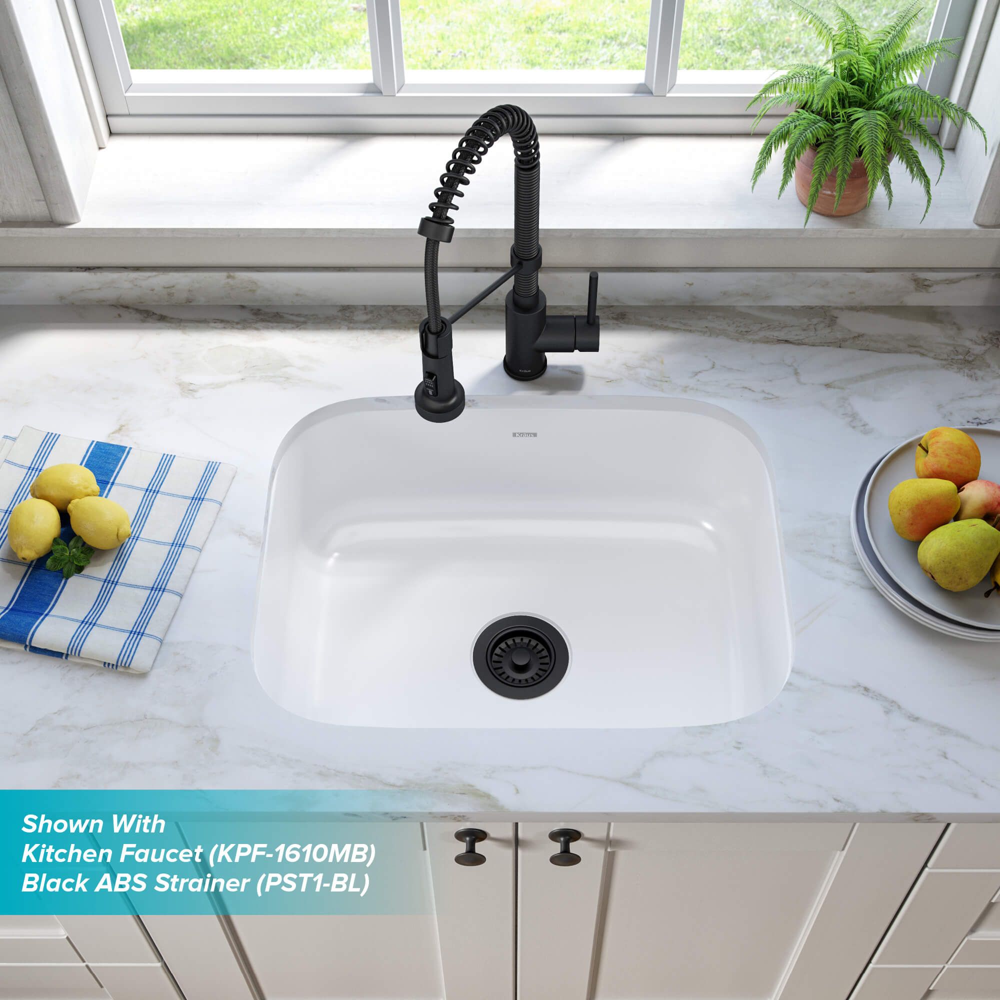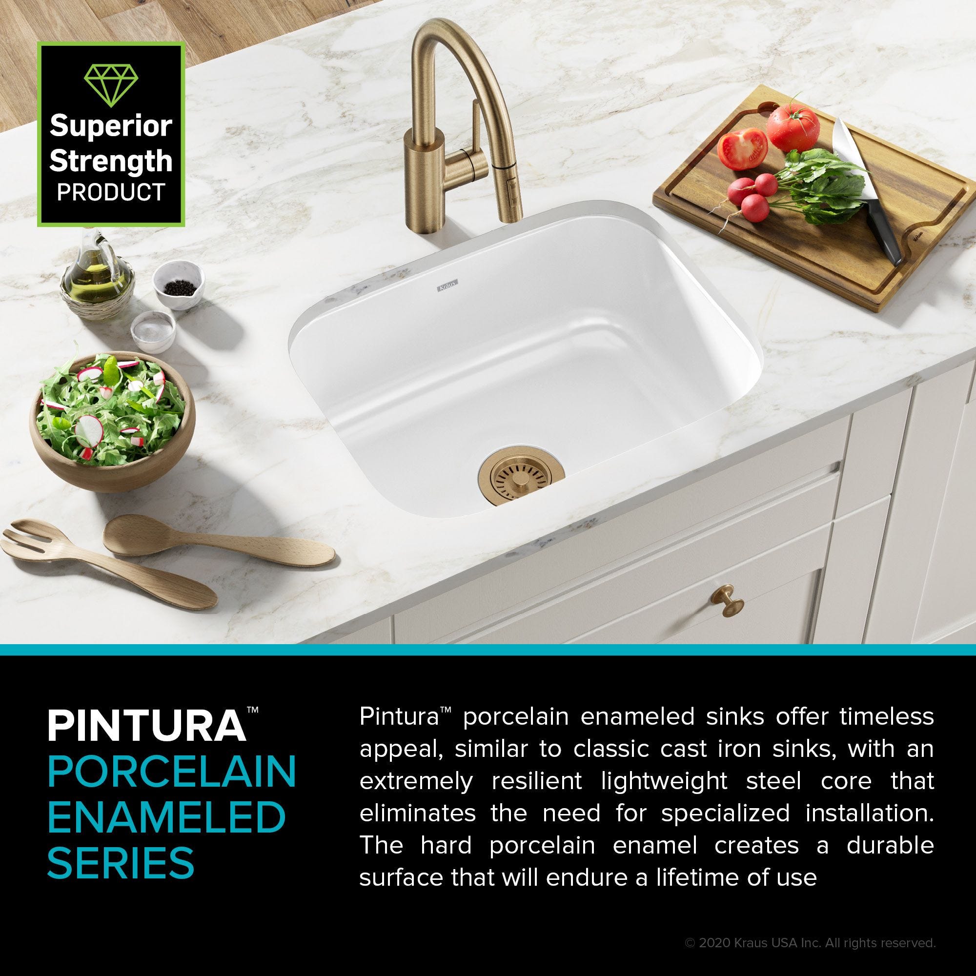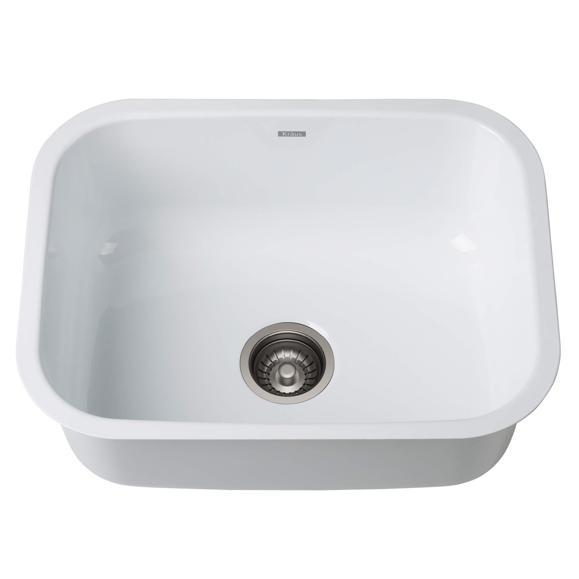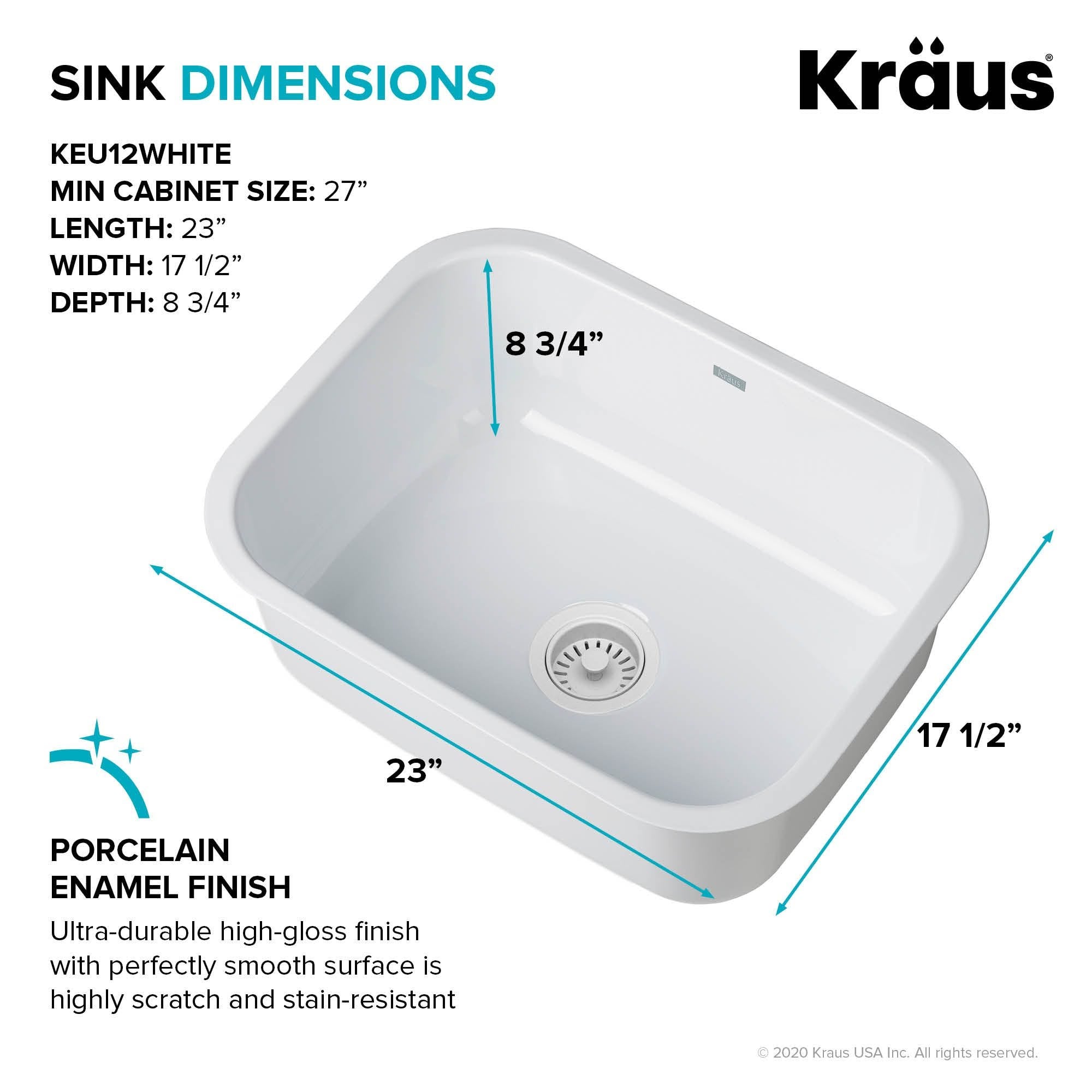 22"언더마운트 에나멜 스틸 싱글볼 주방 싱크대(화이트)